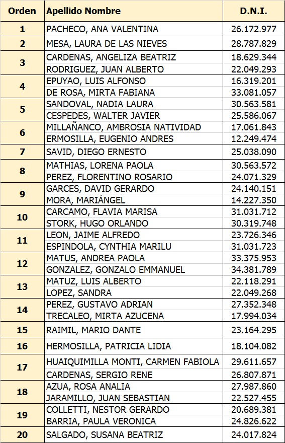 El listado de vecinos convocados es el siguiente: