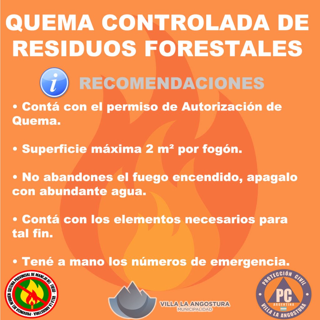 Desde el área anticiparon que en la habilitación de las quemas en el territorio neuquino, el aumento paulatino de las temperaturas y las condiciones climáticas, brindan junto con la brigada de incendios forestales, compartió un listado de teléfonos para tener en cuenta al momento de proceder a realizar quemas.