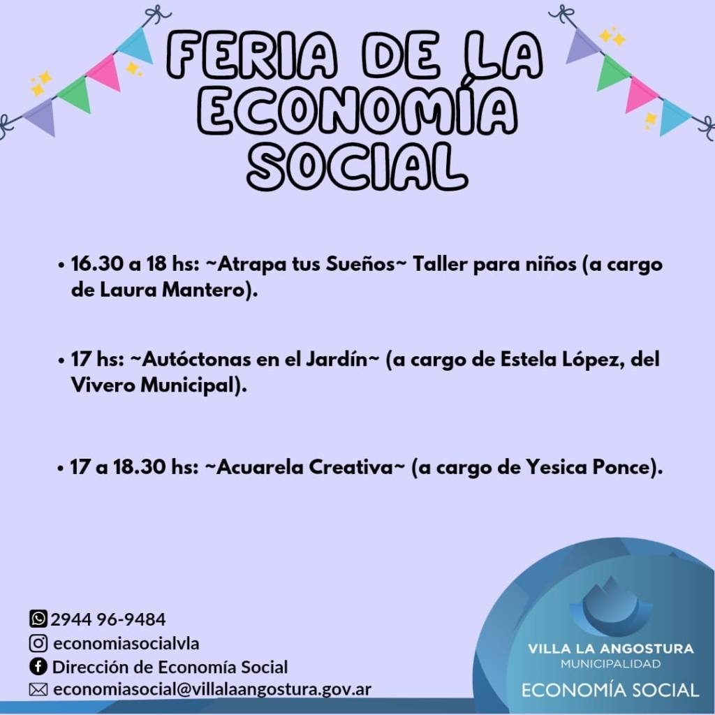 En el parte de prensa la Dirección de Economía Social de Angostura, remarca que, se recuerda especialmente que: aquellos que con su saber tengan la oportunidad de realizar productos y ofrecer servicios a la comunidad de manera genuina, tienen aquí un espacio para iniciar y probar su «potencial emprendimiento», o adecuarlo al mercado interno.