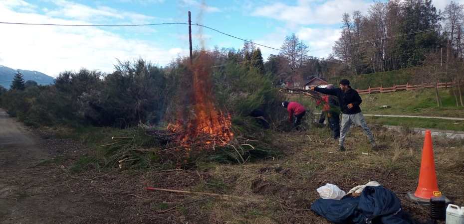 La Subsecretaría de Atención al Vecino, dependiente de la Secretaría de Gobierno, puso en marcha durante la jornada de esta mañana tareas de desmalezamiento y quema de residuos forestales en las dos entradas principales del barrio Lomas del Correntoso.