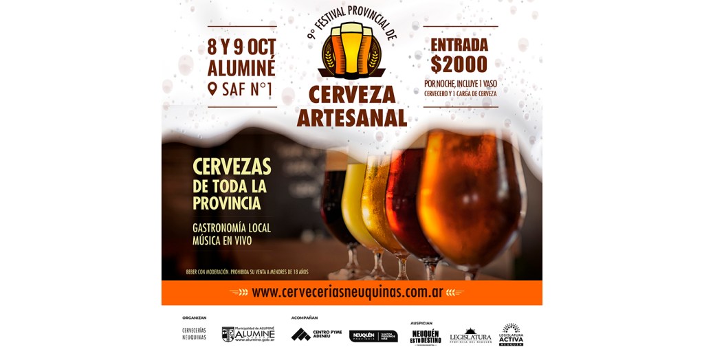 Del 5 al 9 de octubre se llevará a cabo la 9° edición del Festival Provincial de Cerveza Artesanal de Aluminé. El encuentro se desarrollará en el Salón de Actividades Físicas Nº 1 con una nutrida agenda de actividades que incluye el Concurso Neuquino de Cervezas Artesanales y la Feria Cervecera, con la participación de 22 stands de venta de cerveza artesanal.