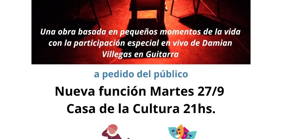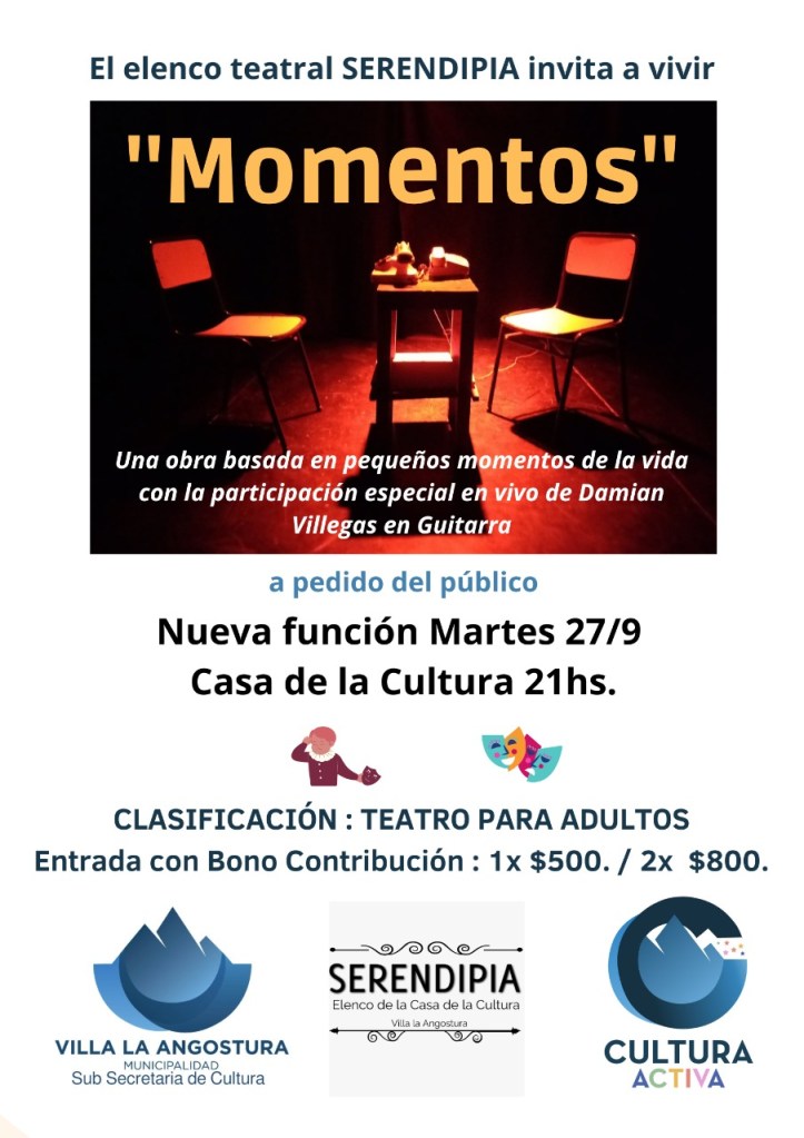21 de septiembre, 202221 de septiembre, 2022 Opinión a Diario Nueva función de «Momentos» en la Casa de la Cultura El elenco teatral de Serendipia invita a una nueva función de la obra «Momentos», a pedido del público Relacionado