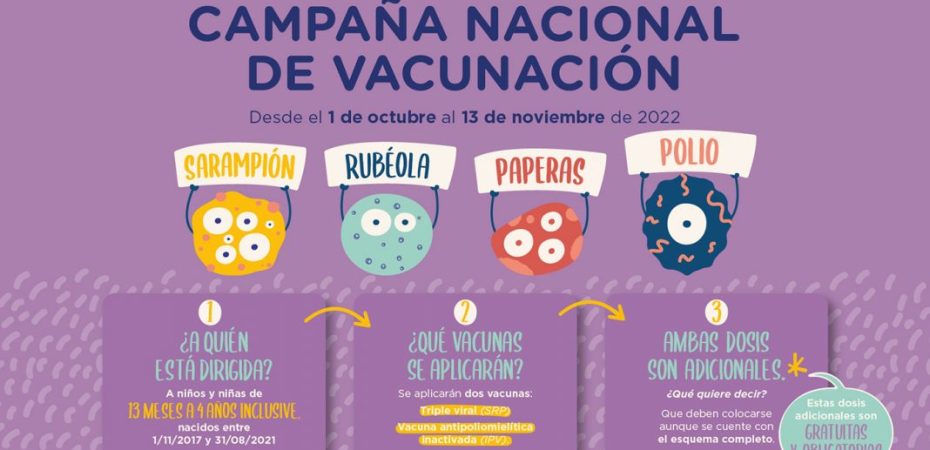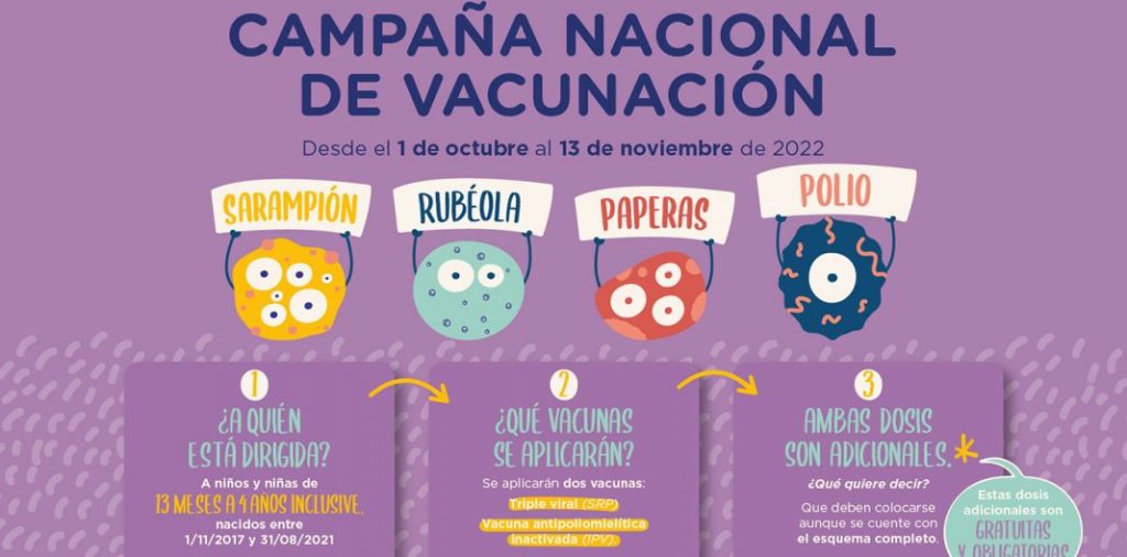 La campaña de vacunación está dirigida a niños y niñas de 13 meses a 4 años inclusive, nacidos entre el 1/11/2017 y el 31/08/2021, a quienes se les aplicarán dos vacunas: la triple viral (SRP) y la antipoliomielítica (IPV). Ambas son dosis adicionales, es decir, que deben colocarse independientemente de las dosis recibidas previamente.