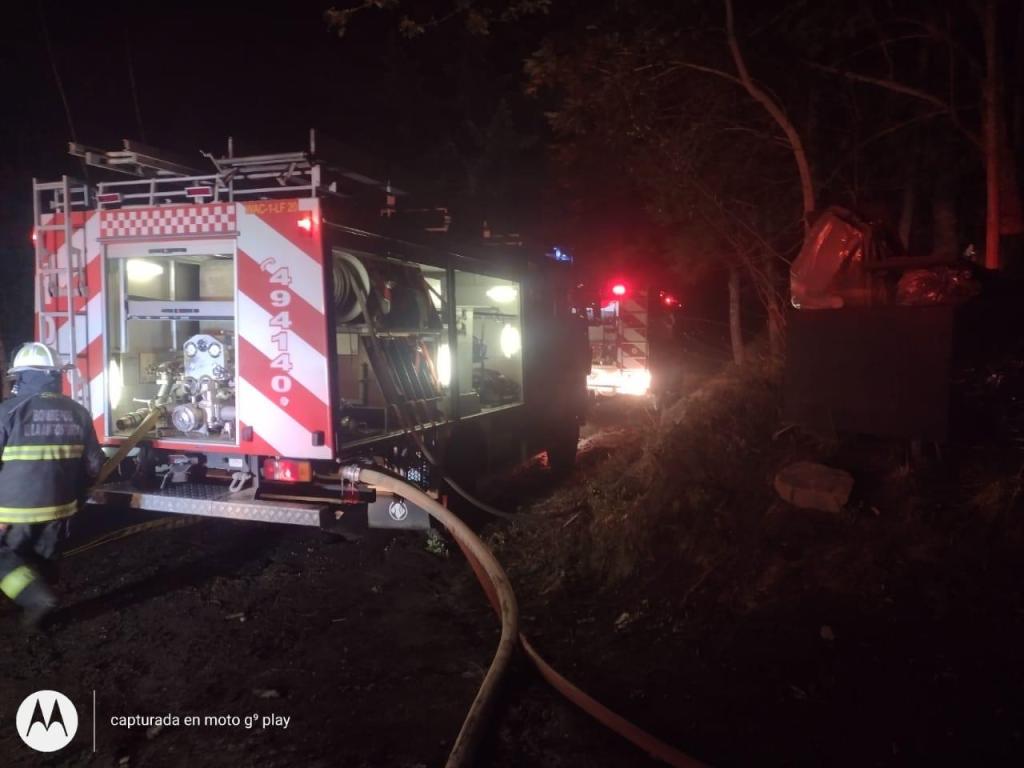 La llamada llega a Bomberos aproximadamente a las 2 AM y al concurrir al llegar al lugar se encuentran con el incendio de una vivienda envuelta en llamas que estaba totalmente declarado, allí las 6 dotaciones de Bomberos Voluntarios mas un camión cisterna del club, trabajaron junto a personal de la comisaria 28, de incendios forestales y de club para sofocarlo.