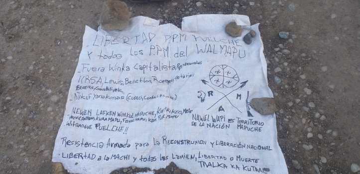 También el personal de Criminalística analizo Folletos encontrados en la zona, en legua Mapuche y con el logo de la RAM, (Resistencia Ancestral Mapuche).