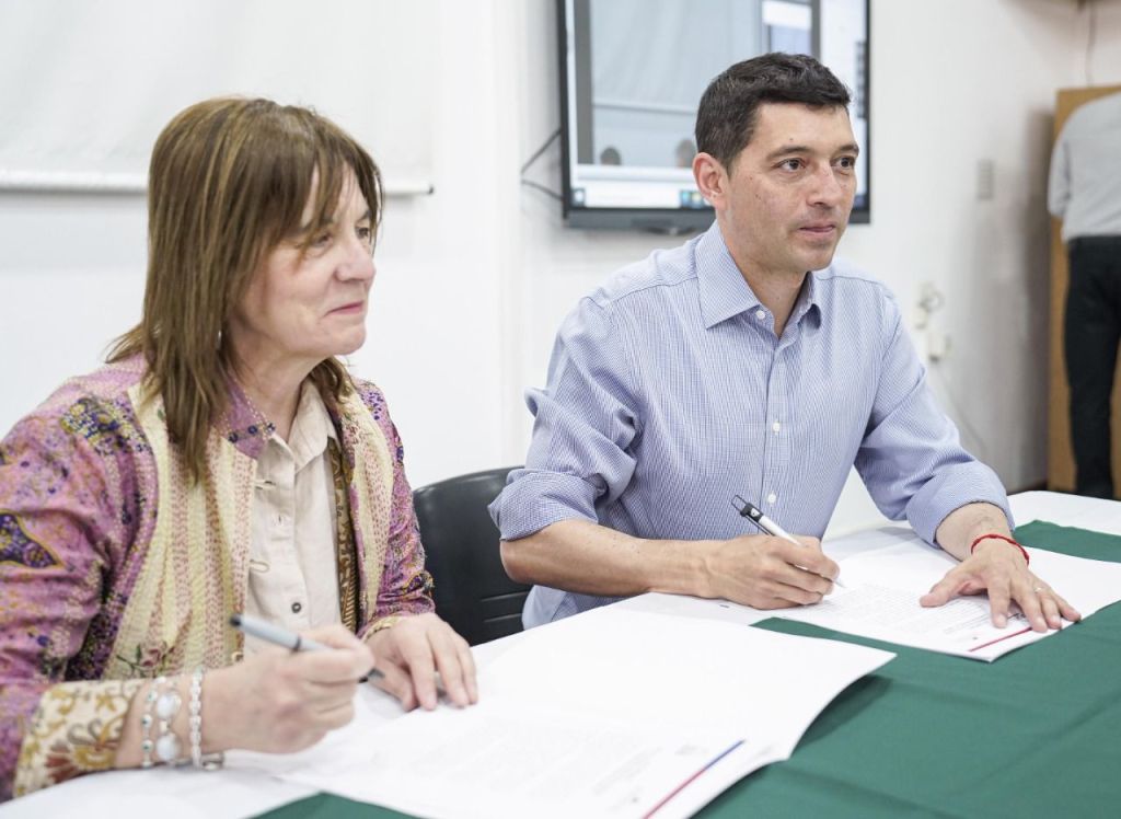 El vicegobernador Marcos Koopmann firmó esta mañana un acta acuerdo con la rectora de la Universidad Nacional del Comahue, Beatriz Gentile, para el aporte por parte de la Legislatura de más de $11.300.000 que serán utilizados en la puesta en marcha de 10 aulas bimodales afectadas a distintas unidades académicas que la casa de estudios tiene en el interior neuquino y que se suman a las 18 incorporadas por Nación durante este año.
