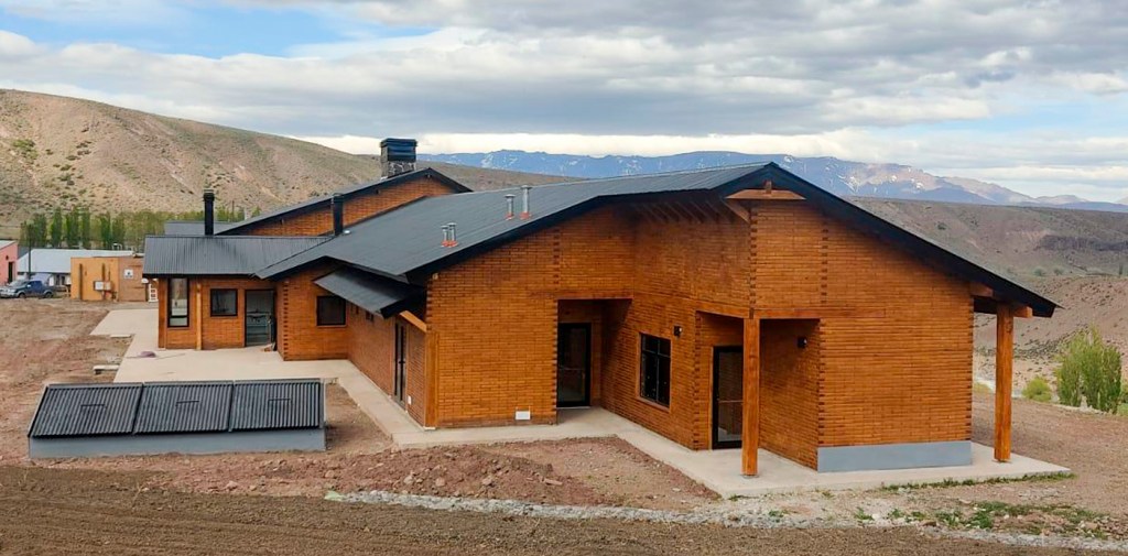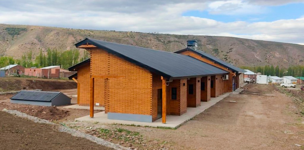 La obra cuenta con una superficie aproximada de mil metros cuadrados, utiliza la metodología constructiva de Corfone, con mampostería de ladrillos de madera encastrados con platea de hormigón armado.