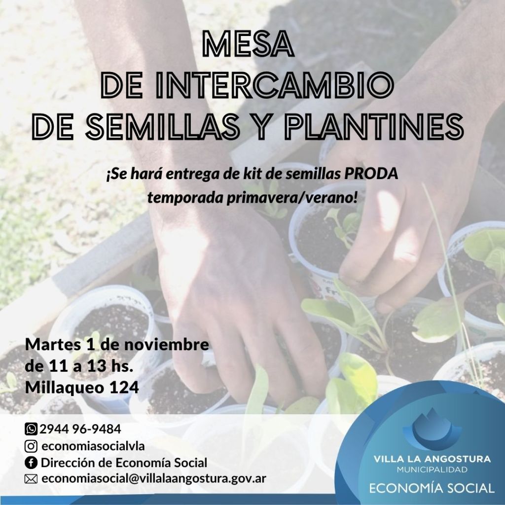 El próximo martes 1 de noviembre se realizará la Mesa de Intercambio de Semillas y Plantines, desde las 11 y hasta las 13 horas en Millaqueo 124, oficina de Economía Social. La dinámica que estas mesas proponen es compartir con los vecinos un espacio de intercambio y facilitación de procesos agroecológicos en la huerta.