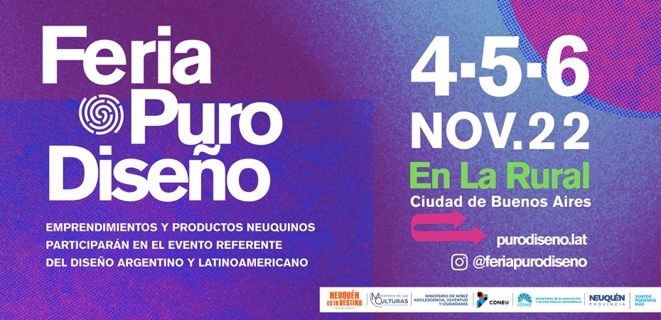 Desde hace más de 22 años, la Feria Puro Diseño reúne a personas exponentes del diseño de Argentina y Latinoamérica, propiciando un espacio de exposición, venta y generación de nuevas oportunidades de negocios para el sector. En esta oportunidad, la muestra de diseño se llevará adelante desde el 4 al 6 de noviembre en el predio de La Rural de la ciudad de Buenos Aires y debido a la participación de representantes de 9 provincias será la edición más federal de sus dos décadas de reconocida trayectoria como plataforma de difusión del sector creativo y emprendedor.