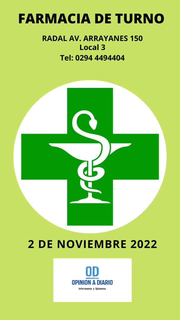2 de noviembre, 2022 Opinión a Diario Farmacia de Turno para hoy miércoles 2 de noviembre en Villa la Angostura Neuquén Relacionado