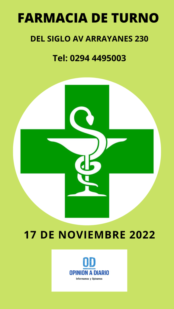 17 de noviembre, 202217 de noviembre, 2022 Opinión a Diario Farmacia de Turno para hoy jueves 17 de noviembre en Villa la Angostura Neuquén Relacionado