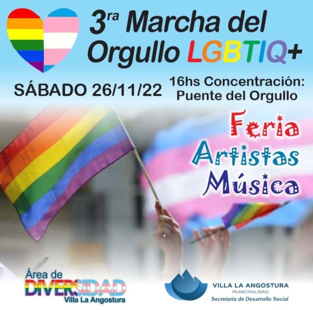 Sera el próximo sábado 26 de noviembre a partir de las 16 horas, en la Plaza de La Diversidad de Villa La Angostura, concentrándose en el Puente de los colores, en el ingreso a la localidad.