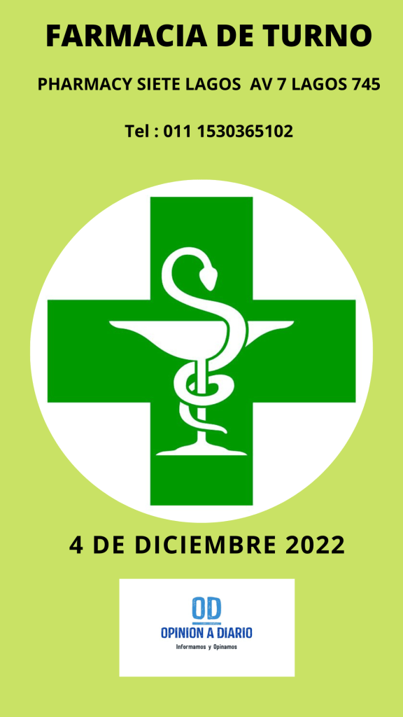 4 de diciembre, 20224 de diciembre, 2022 Opinión a Diario Farmacia de Turno para hoy domingo 4 de diciembre en Villa la Angostura Neuquén Los turnos comienzan a las 08.30 hs día cartelera hasta las 08.30 hs del día siguiente Relacionado