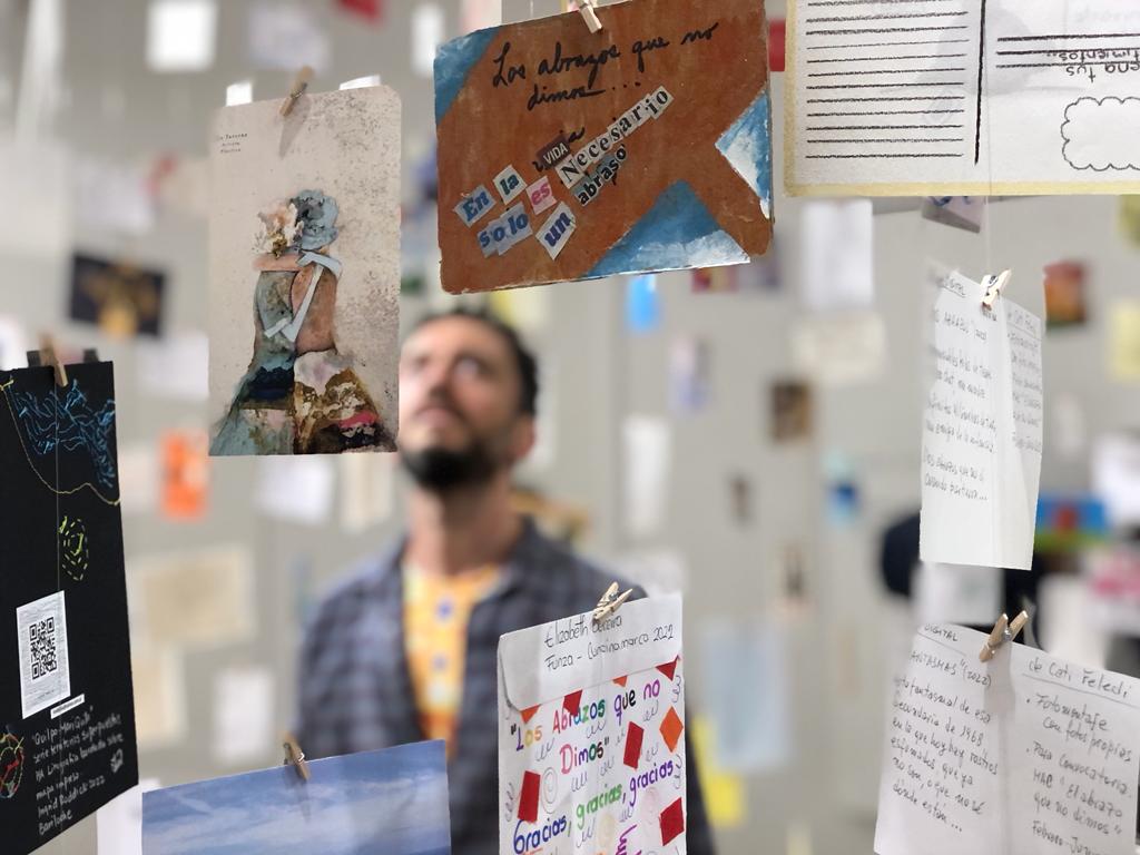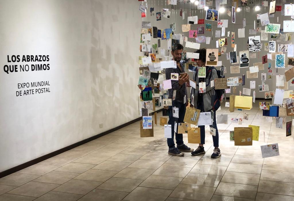La Muestra que esta compuesta por cientos de postales de todo el mundo, y que hace referencia al momento en el que la pandemia separo a las personas con el distanciamiento y la imposibilidad de viajar.