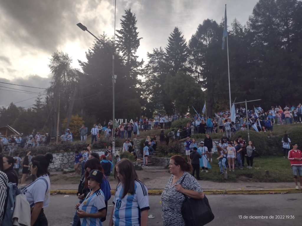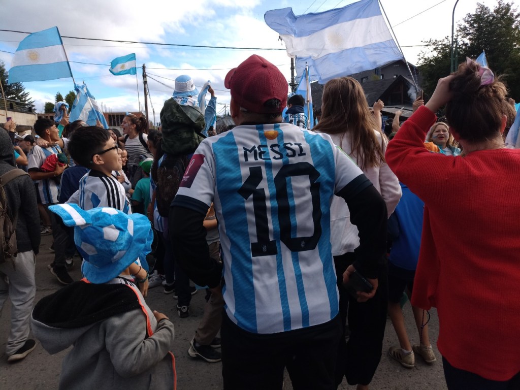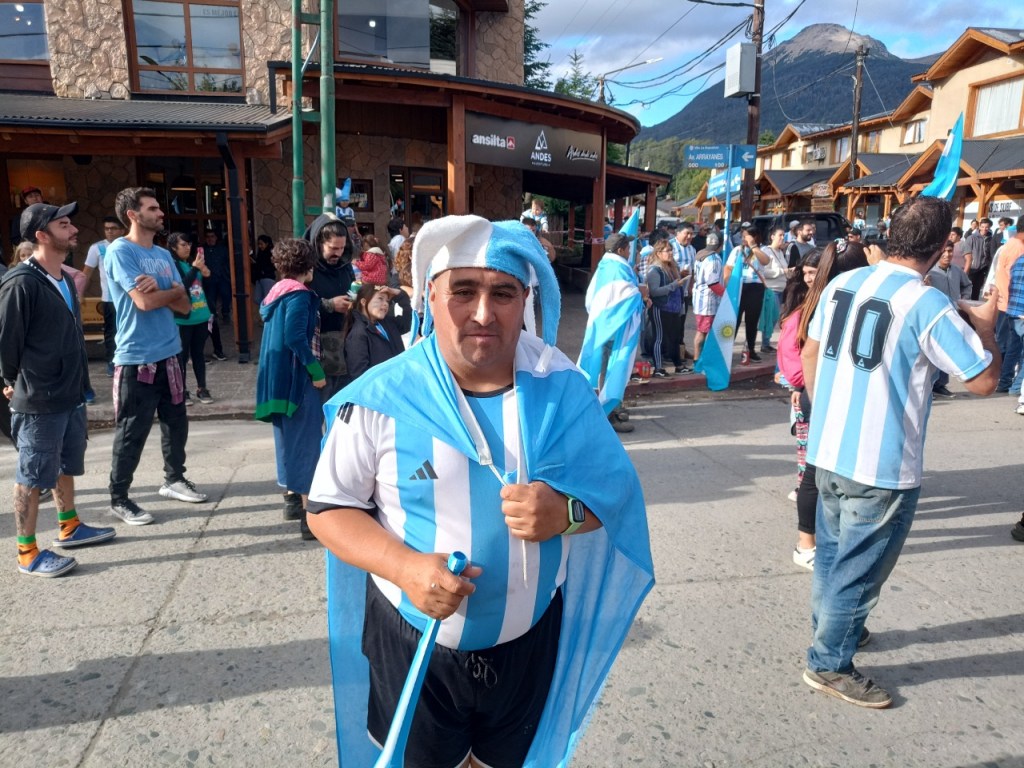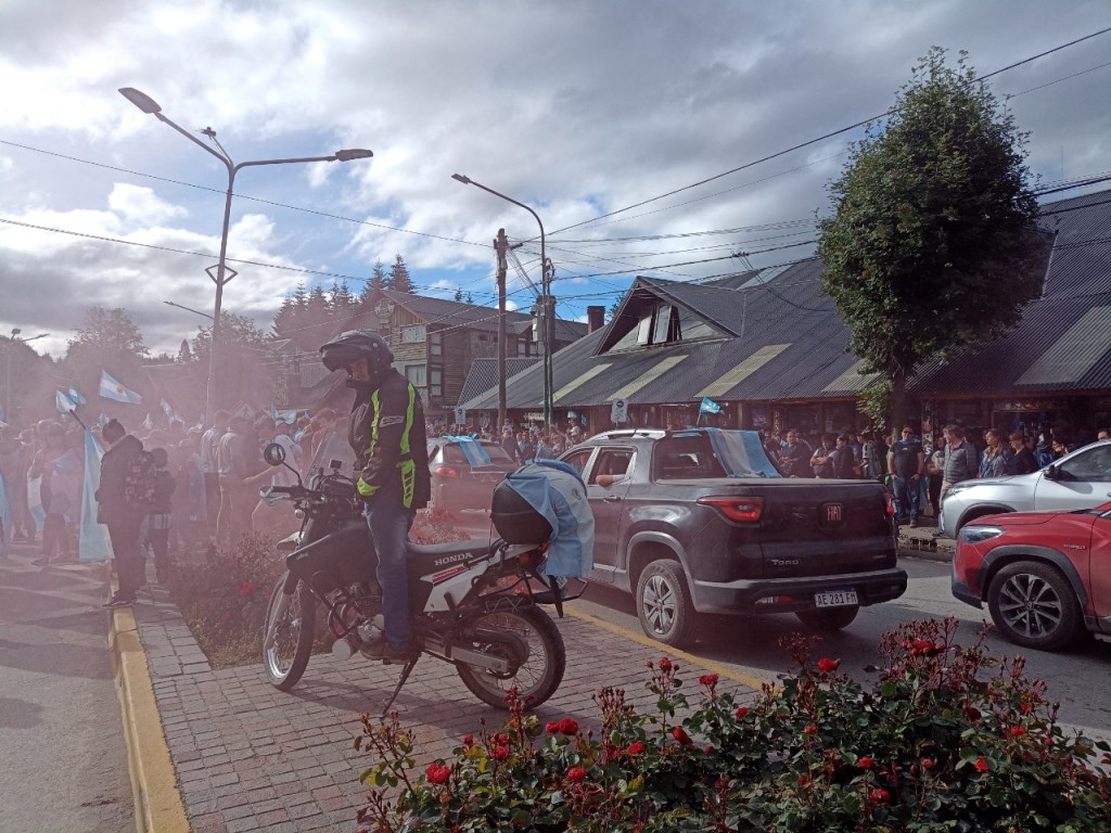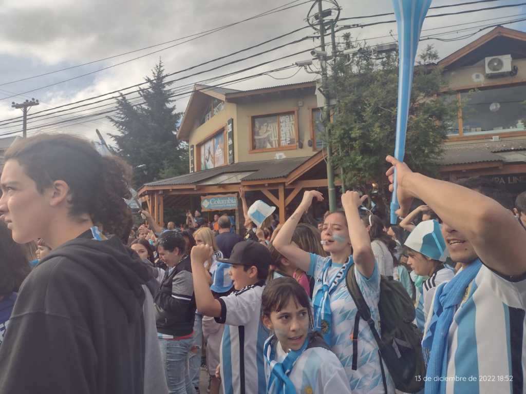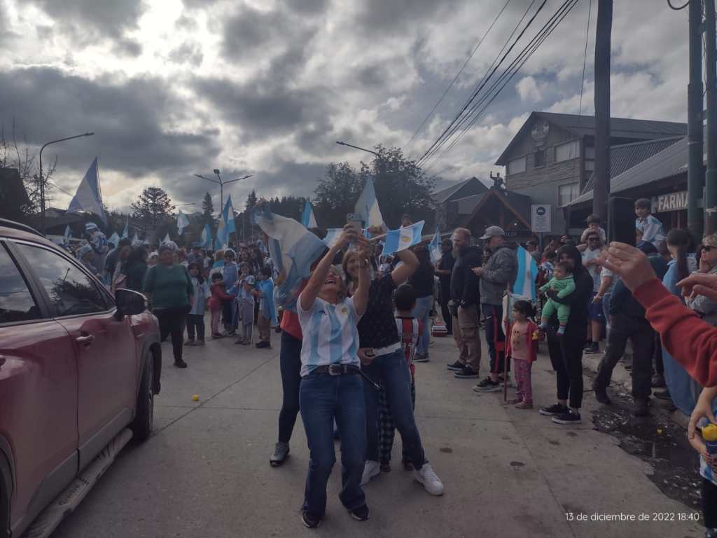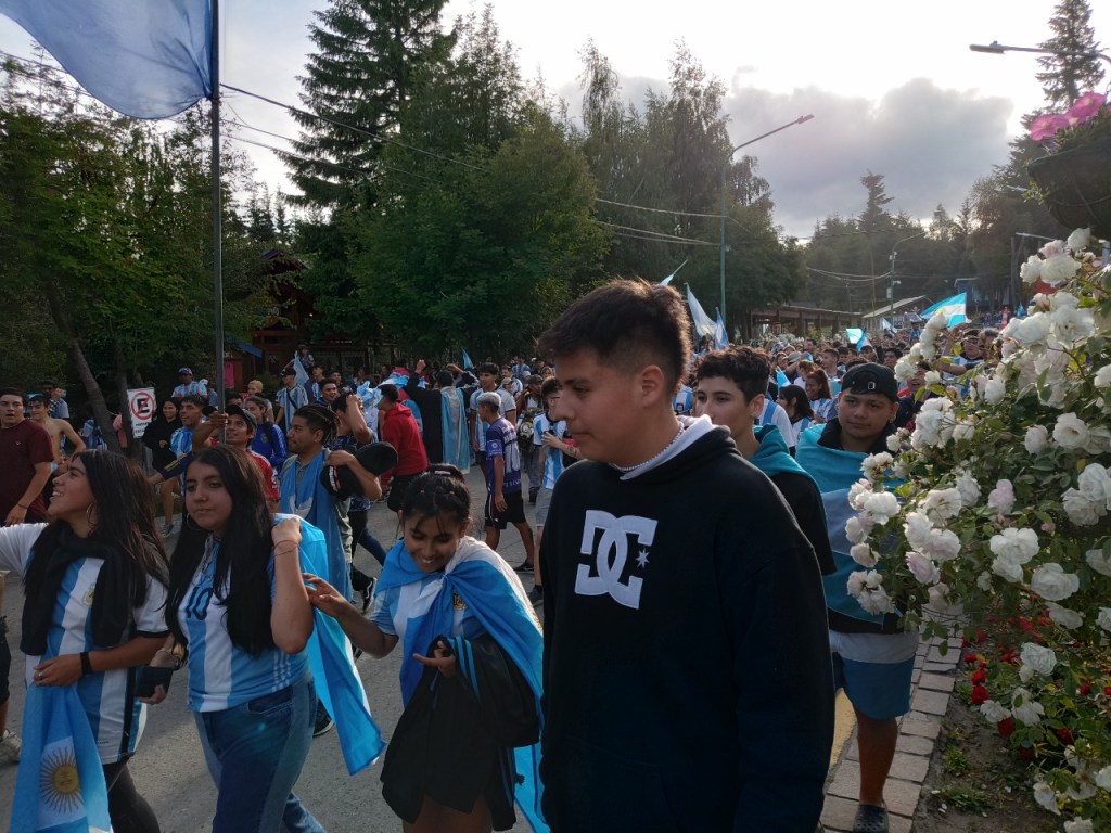 Familias enteras, niños, adultos, mayores todo tipo de publico se acerco a lucir los colores celeste y blanco o por lo menos saltar al ritmo de los bombos, las banderas agitando y el humo de colores que se dispuso en la Avenida Arrayanes de Villa la Angostura.