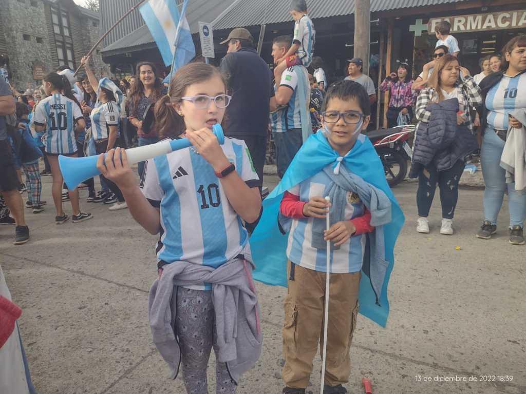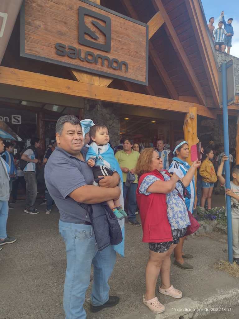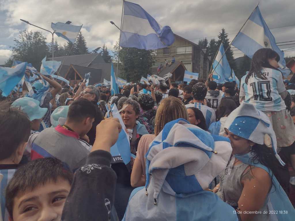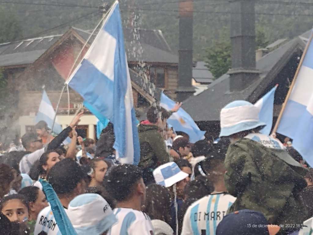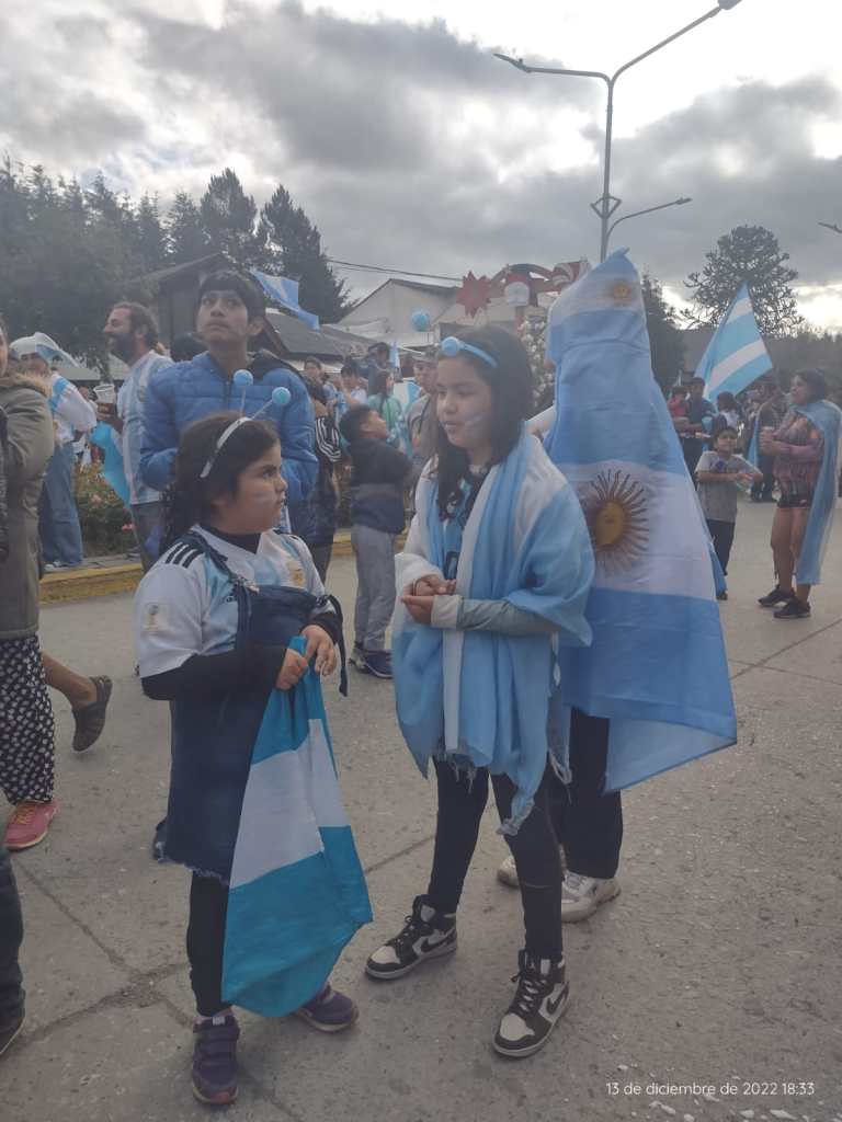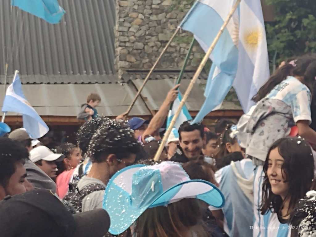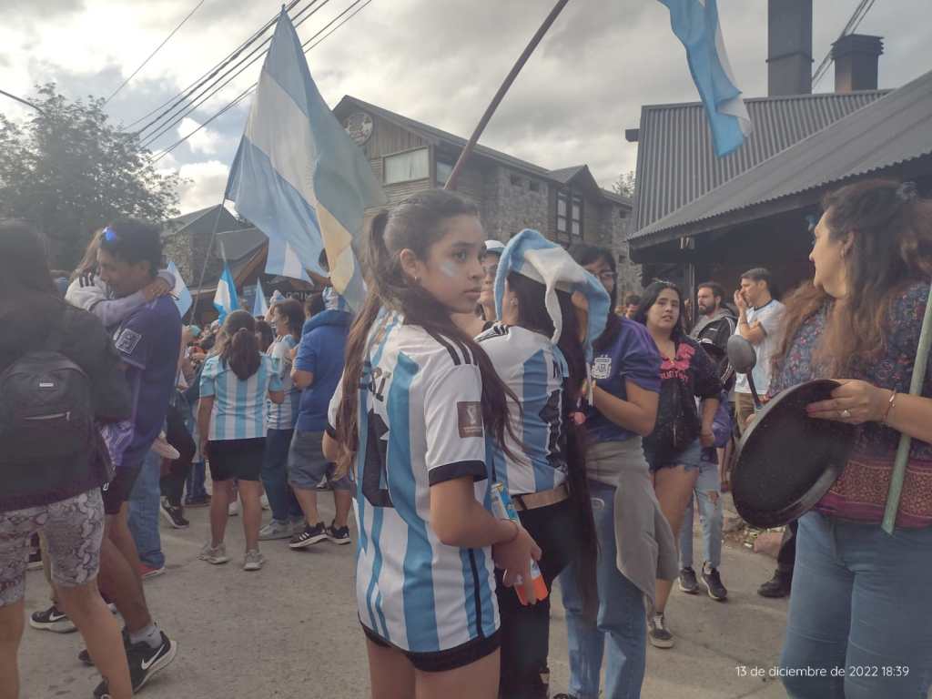 Familias enteras, niños, adultos, mayores todo tipo de publico se acerco a lucir los colores celeste y blanco o por lo menos saltar al ritmo de los bombos, las banderas agitando y el humo de colores que se dispuso en la Avenida Arrayanes de Villa la Angostura.