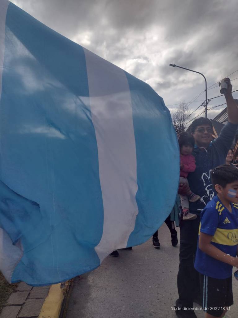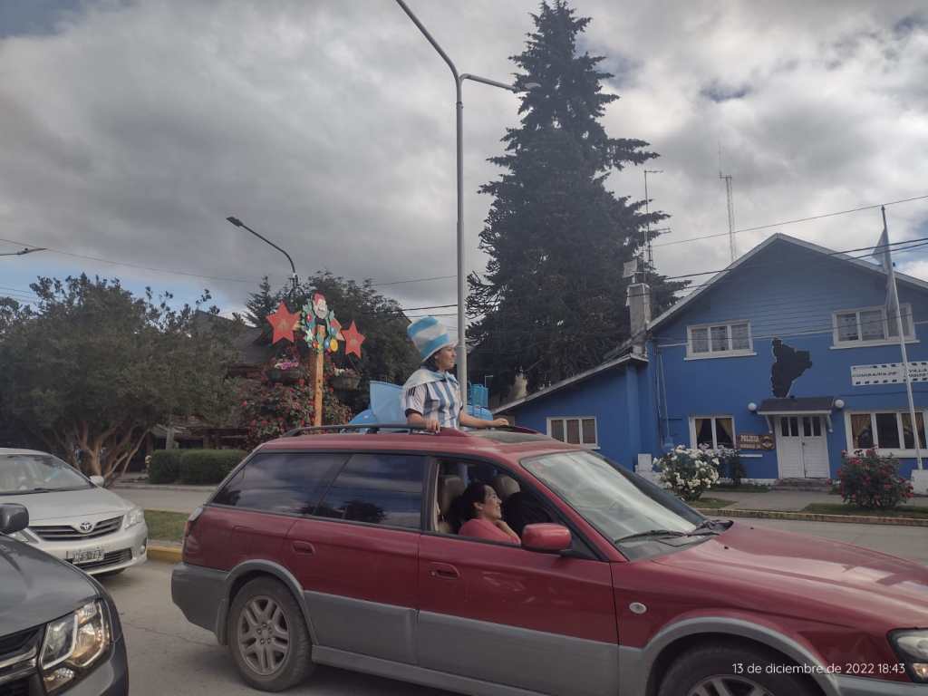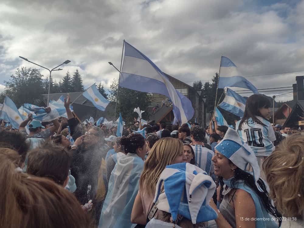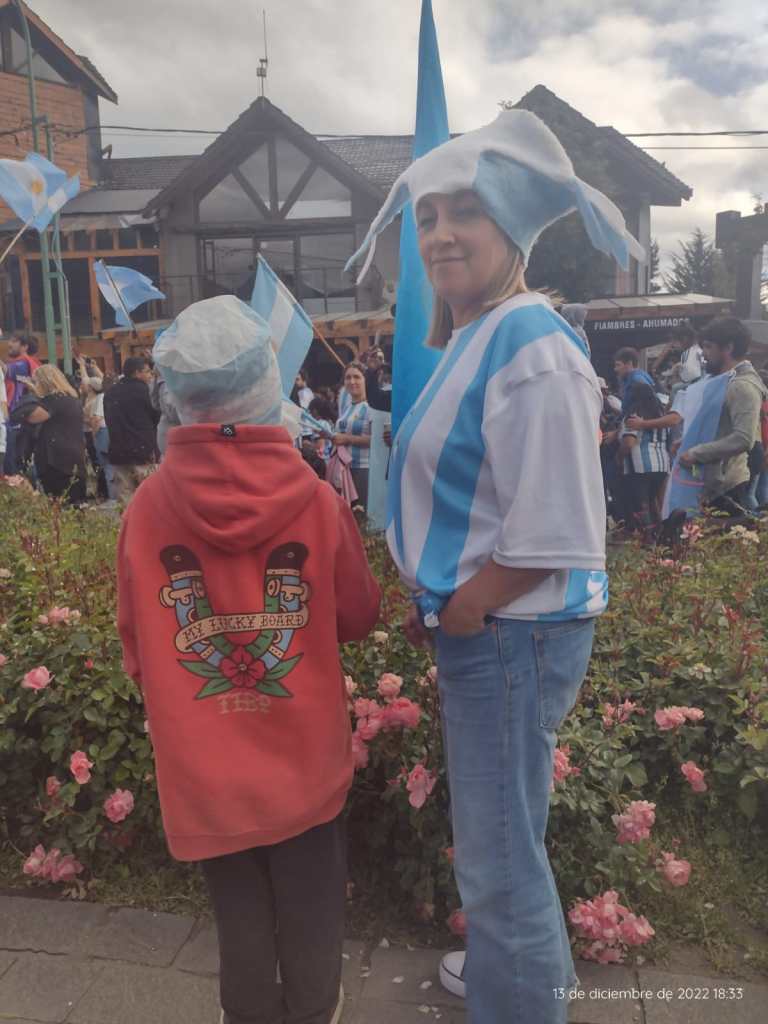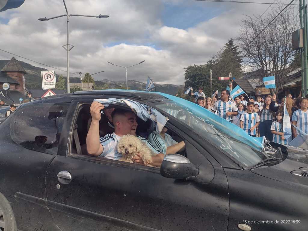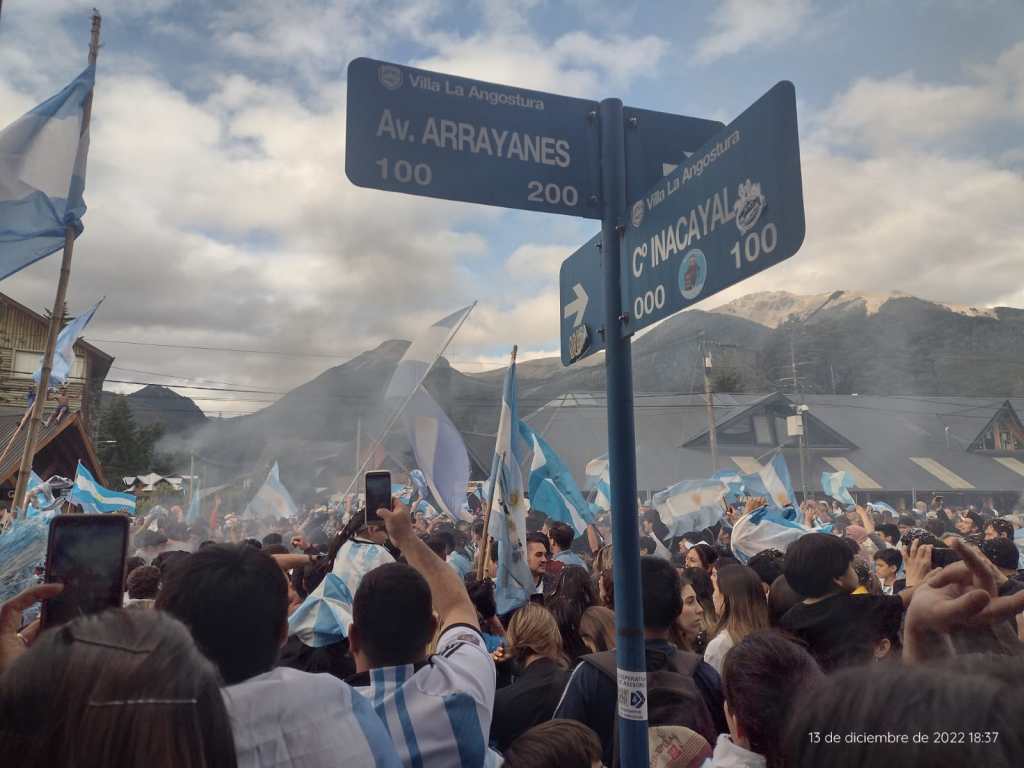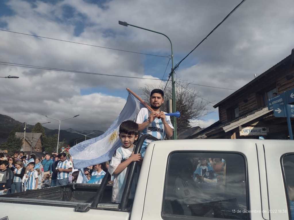 Familias enteras, niños, adultos, mayores todo tipo de publico se acerco a lucir los colores celeste y blanco o por lo menos saltar al ritmo de los bombos, las banderas agitando y el humo de colores que se dispuso en la Avenida Arrayanes de Villa la Angostura.