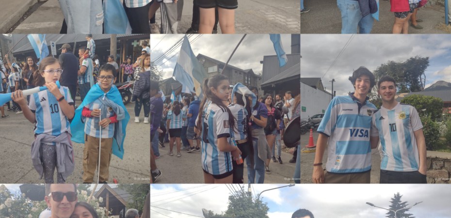 Familias enteras, niños, adultos, mayores todo tipo de publico se acerco a lucir los colores celeste y blanco o por lo menos saltar al ritmo de los bombos, las banderas agitando y el humo de colores que se dispuso en la Avenida Arrayanes de Villa la Angostura.