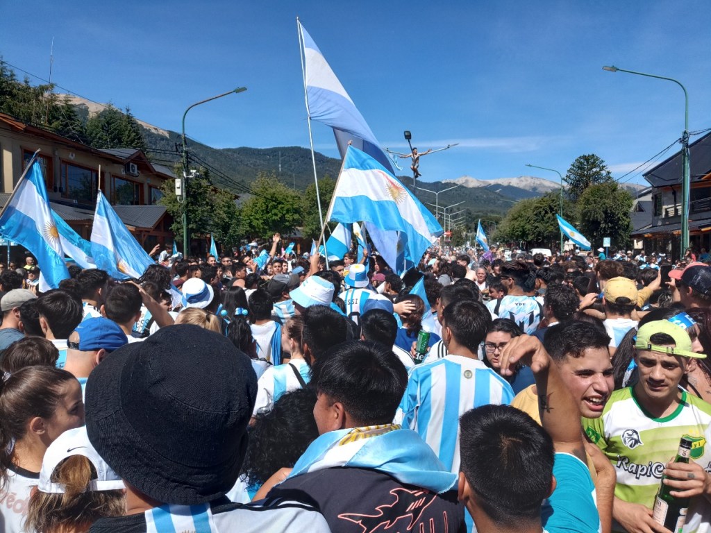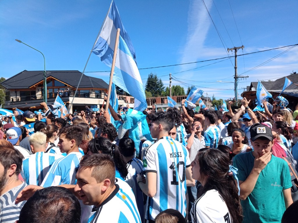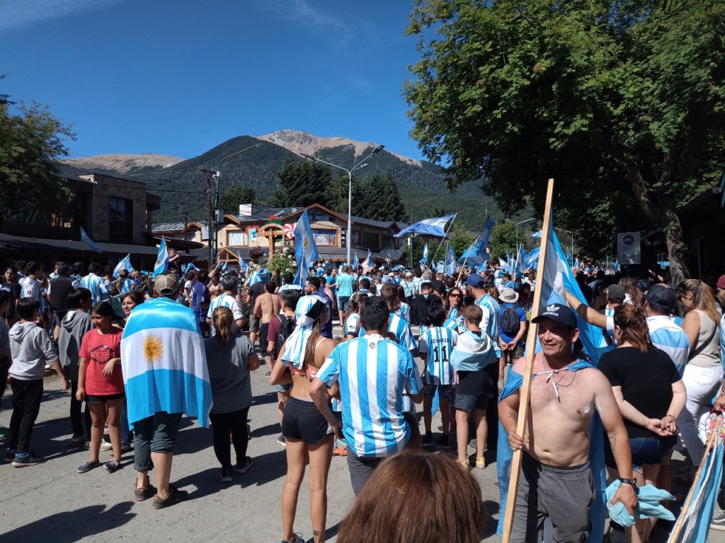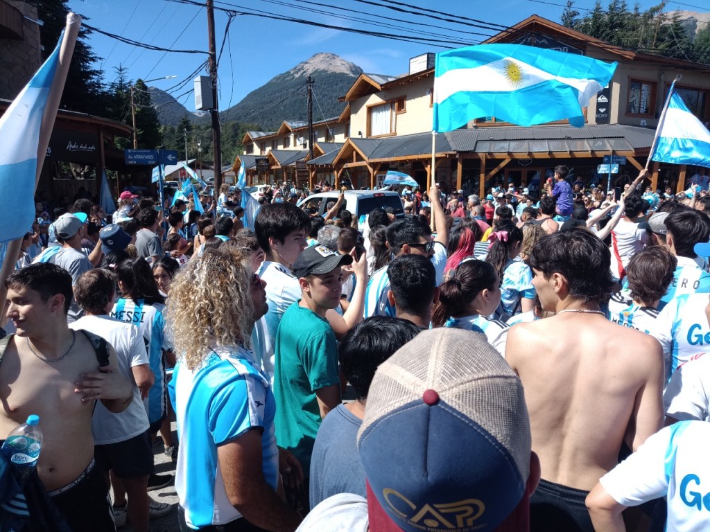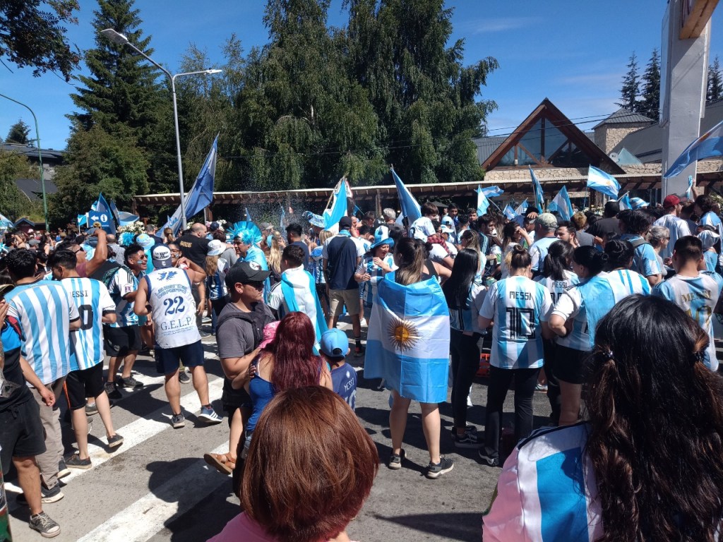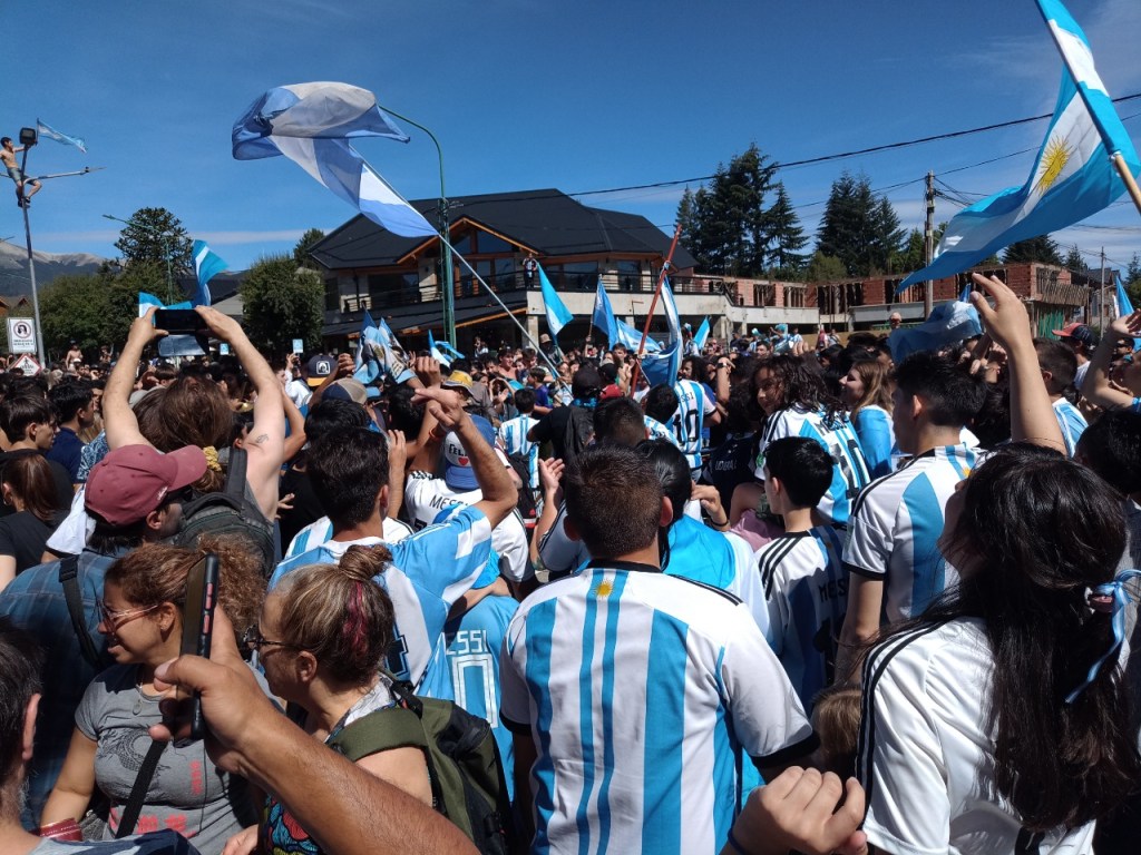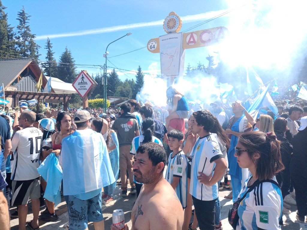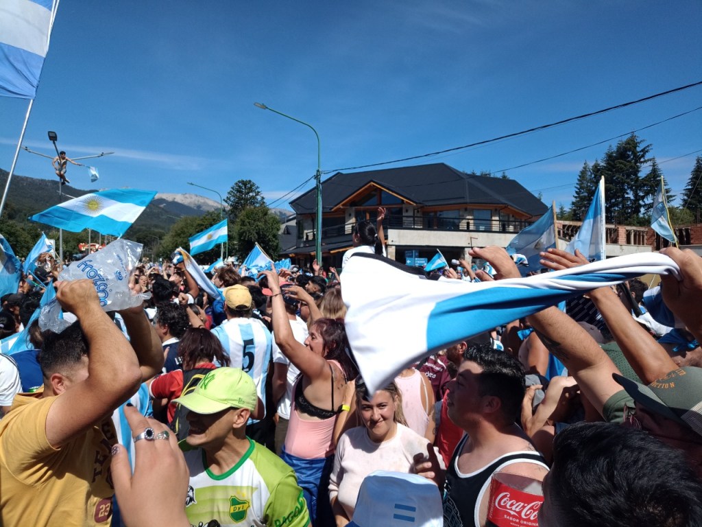 En la Avenida principal de la Angostura se vivió un festejo de colores y canticos con un sol impresionante que acompañaba el triunfo Argentino sobre Francia. Se sufrió pero luego se desato la alegría Celeste y Blanca.