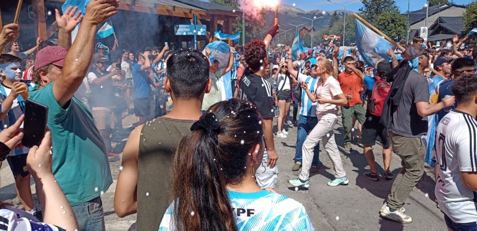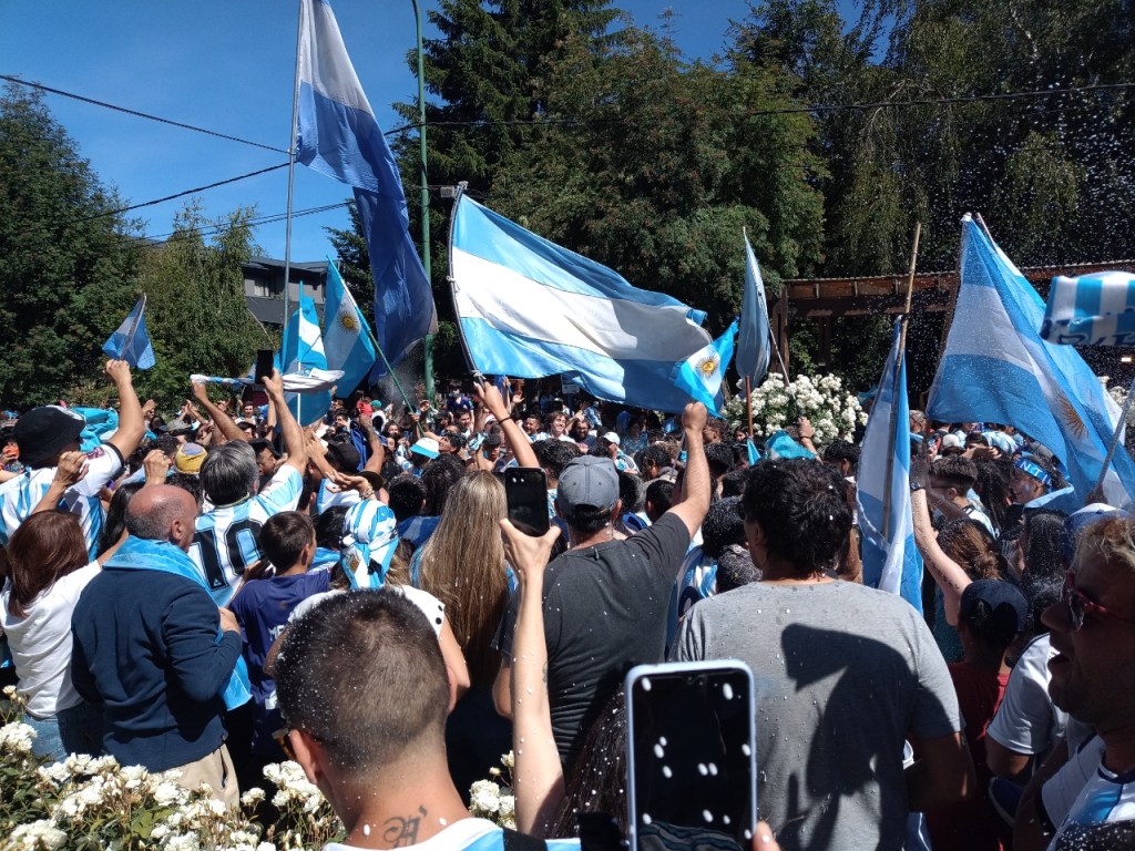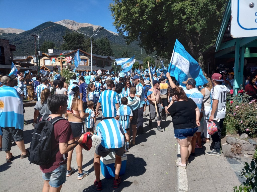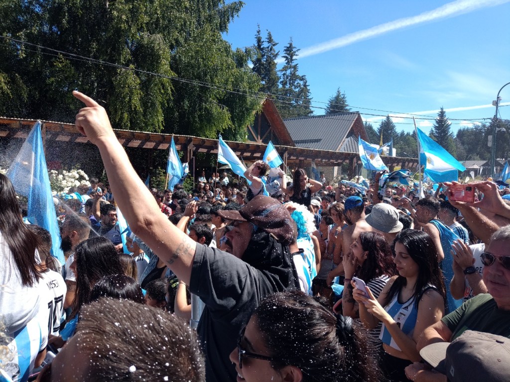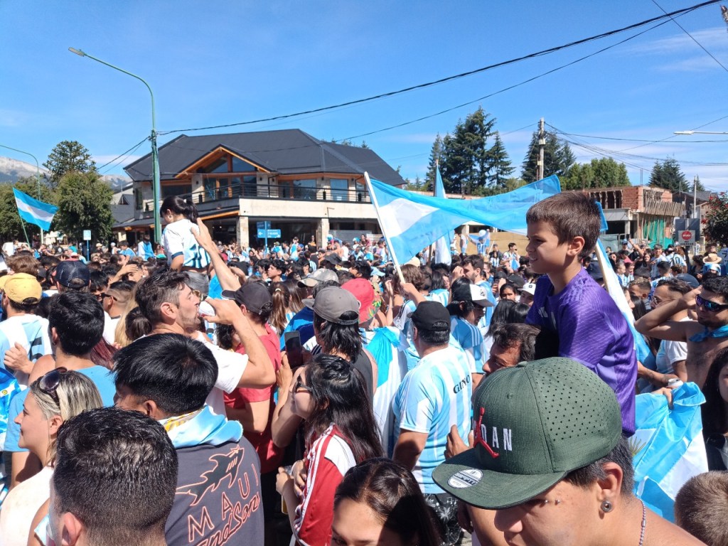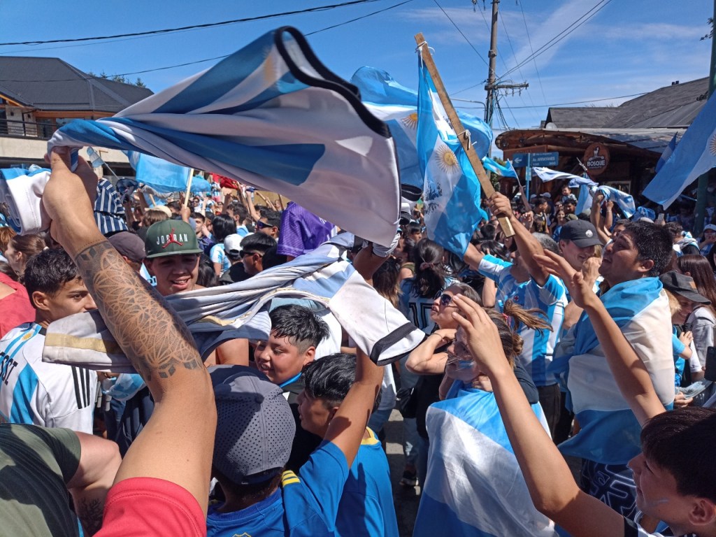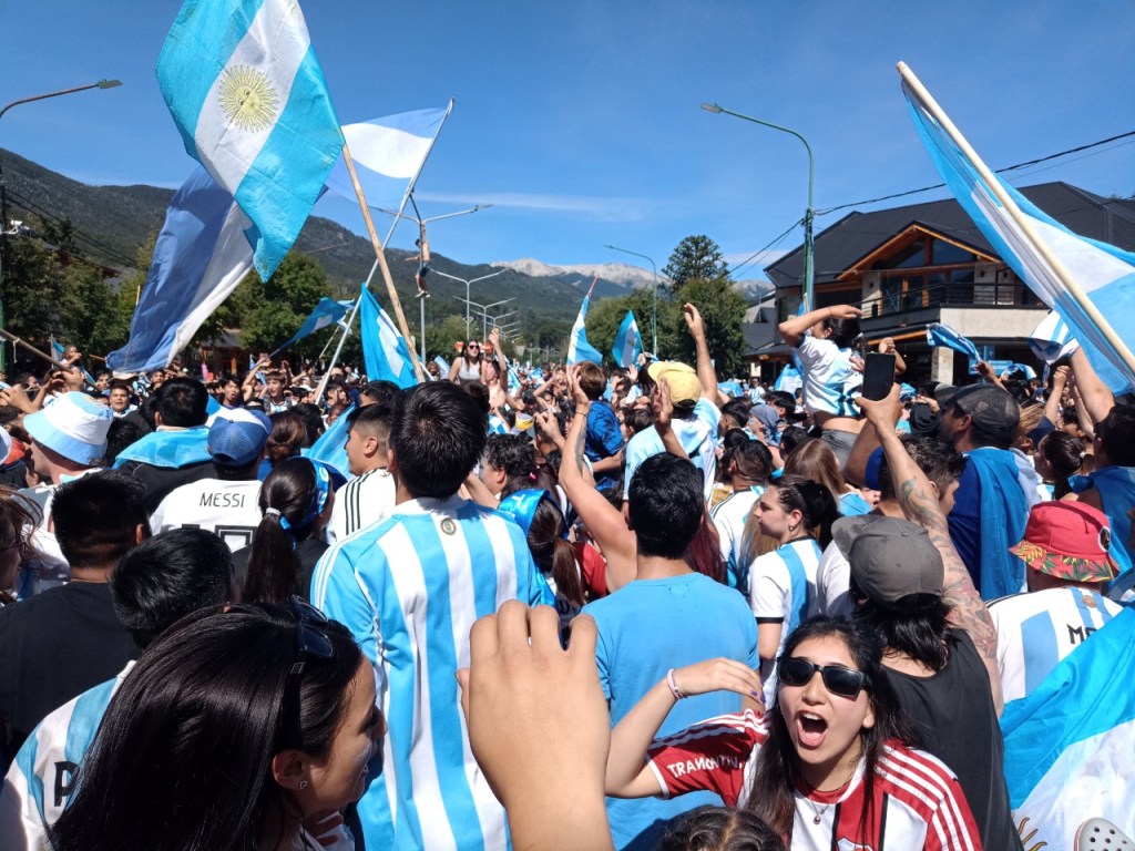 En la Avenida principal de la Angostura se vivió un festejo de colores y canticos con un sol impresionante que acompañaba el triunfo Argentino sobre Francia. Se sufrió pero luego se desato la alegría Celeste y Blanca.