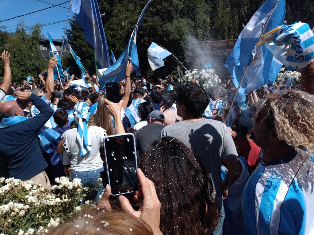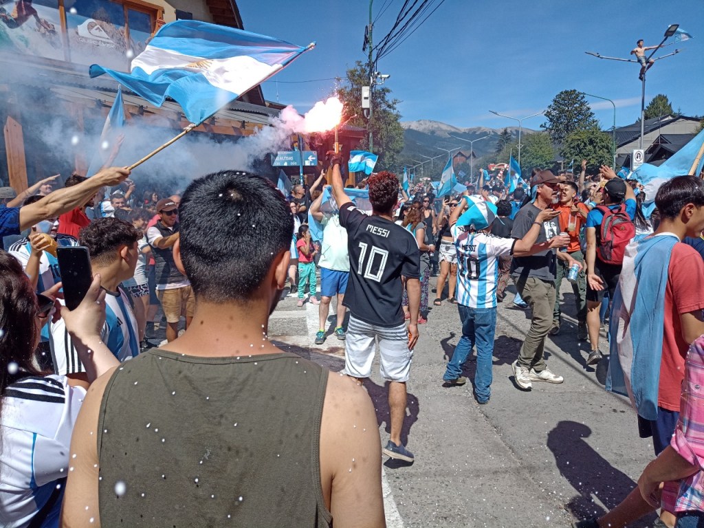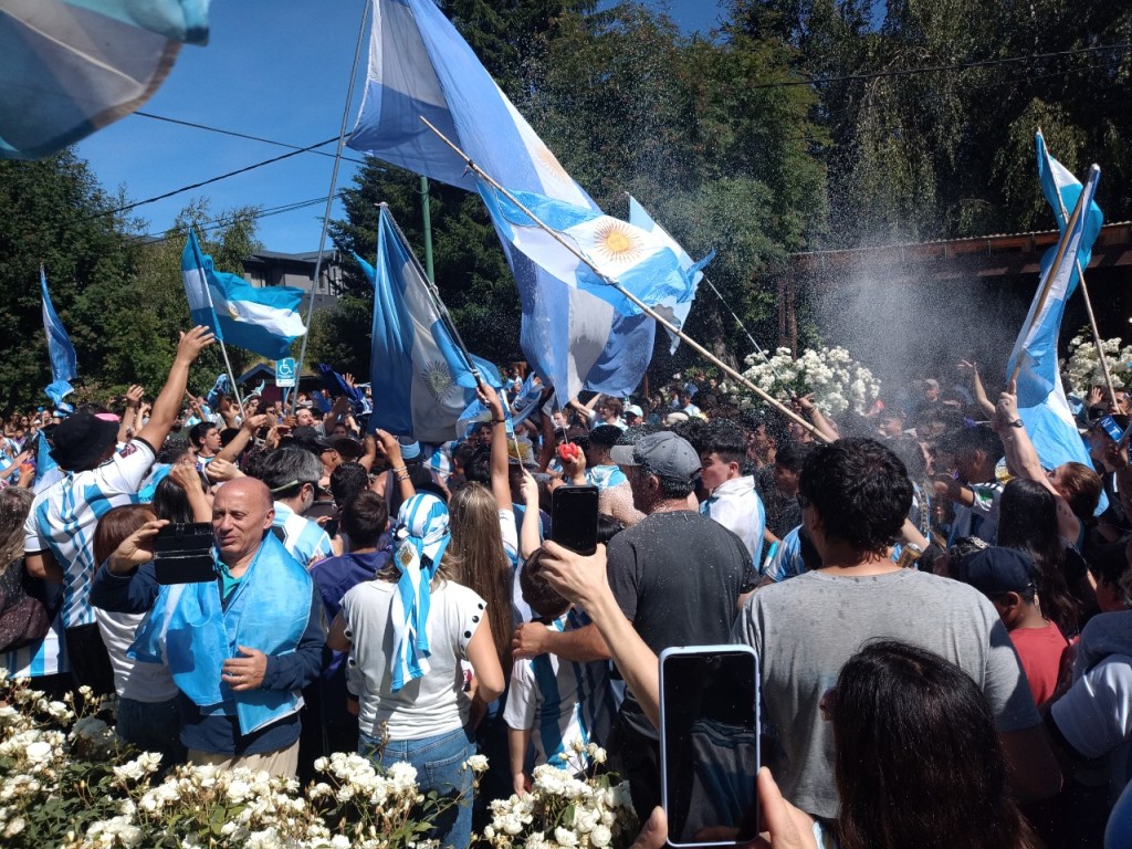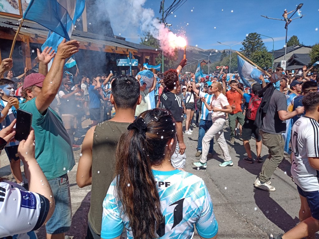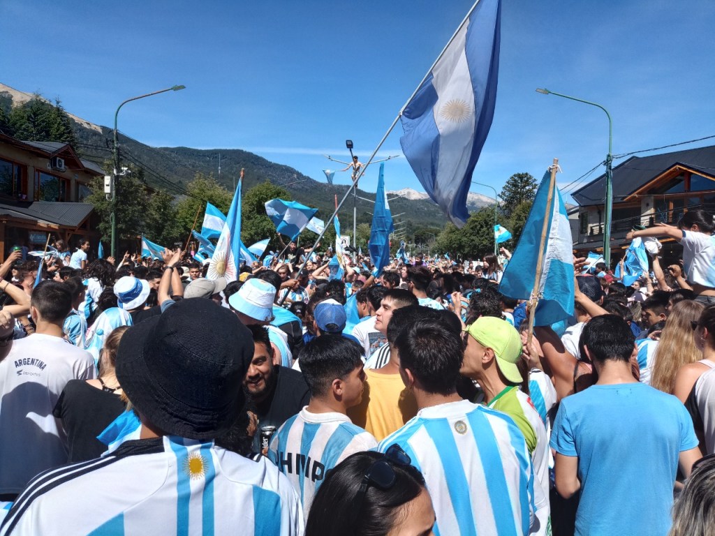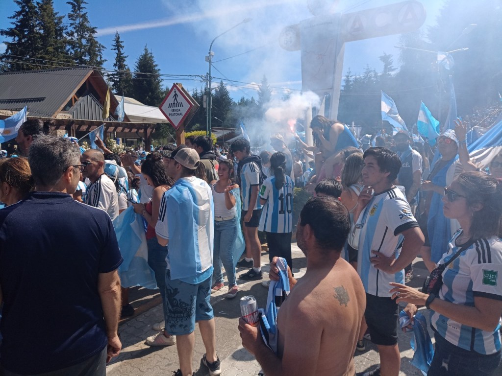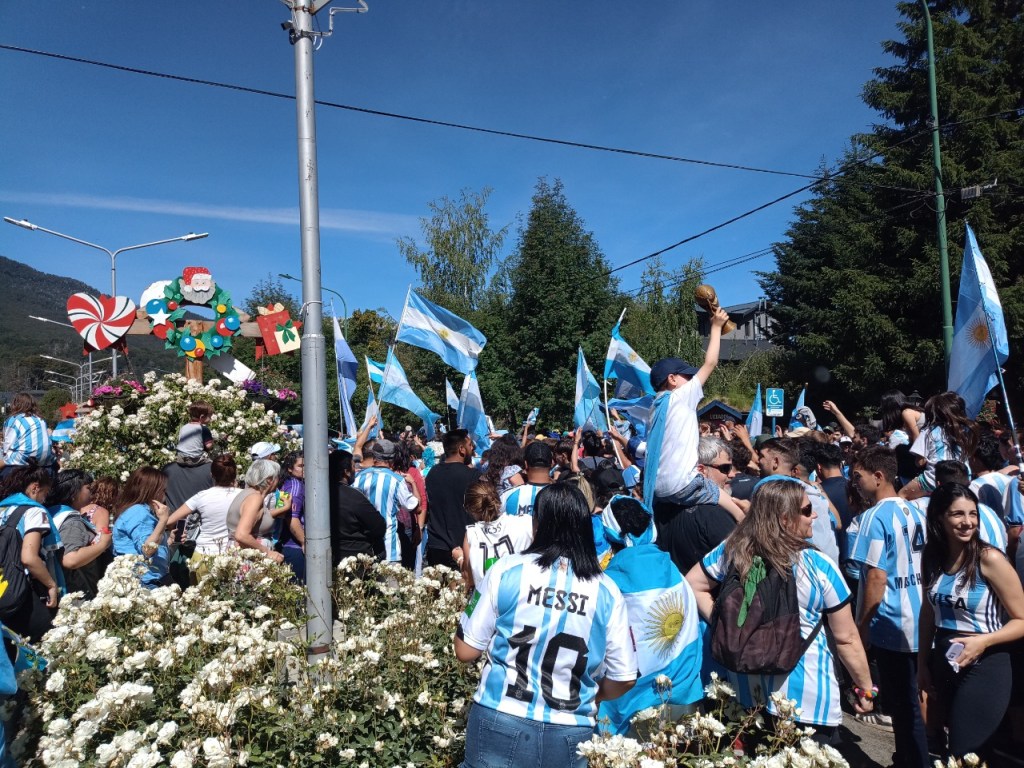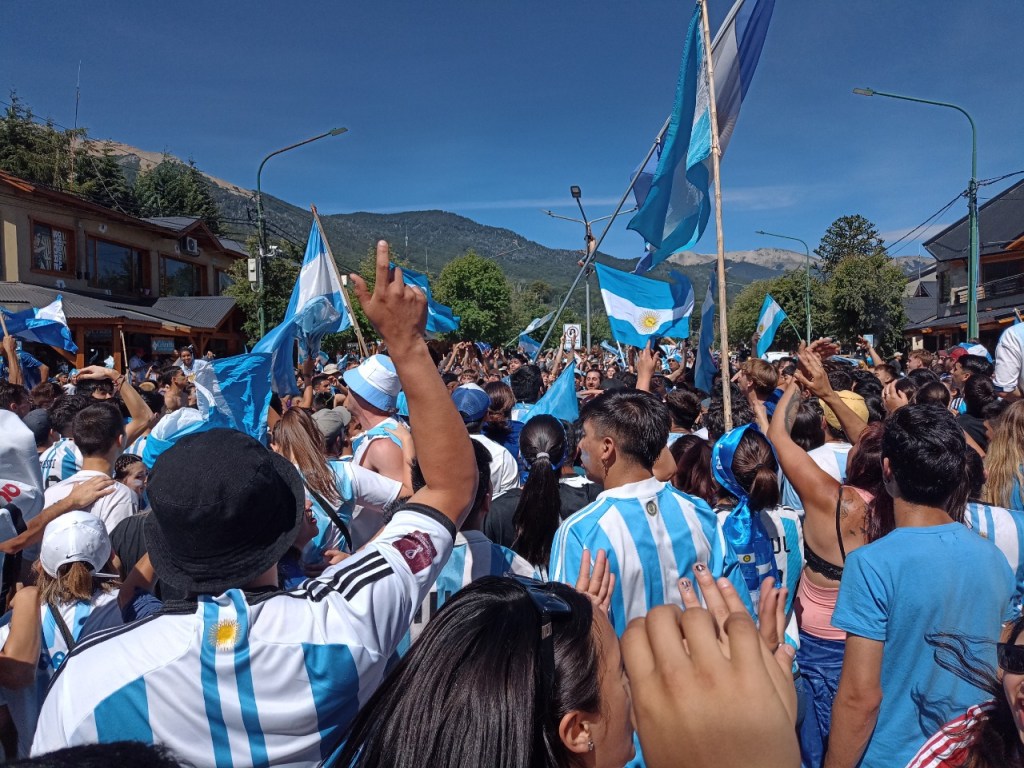 En la Avenida principal de la Angostura se vivió un festejo de colores y canticos con un sol impresionante que acompañaba el triunfo Argentino sobre Francia. Se sufrió pero luego se desato la alegría Celeste y Blanca.