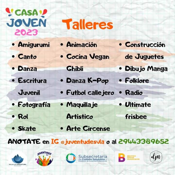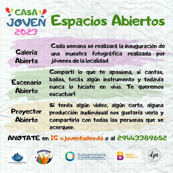 Quienes quieran inscribirse para participar deben contactarse con el Área de Juventudes y Adolescencias a través de Instagram @juventudesvla o al 2944-3389652.