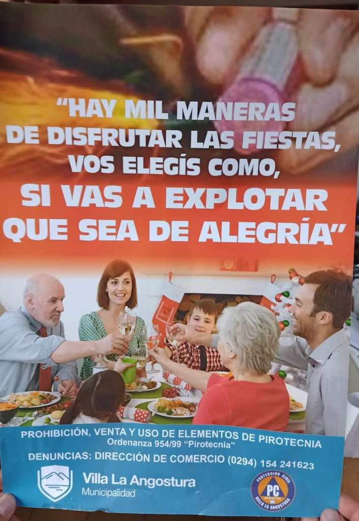 A lo largo de toda esta semana, inspectores de dicha dependencia municipal recorrieron comercios locales para realizar inspecciones de rutina orientadas a la prohibición de venta de pirotecnia y la prohibición de venta de alcohol a menores de 18 años. A su vez, entregaron cartelería informativa y de concientización bajo el lema “Hay mil maneras de disfrutar las fiestas, vos elegís cómo. Si vas a explotar que sea de alegría”