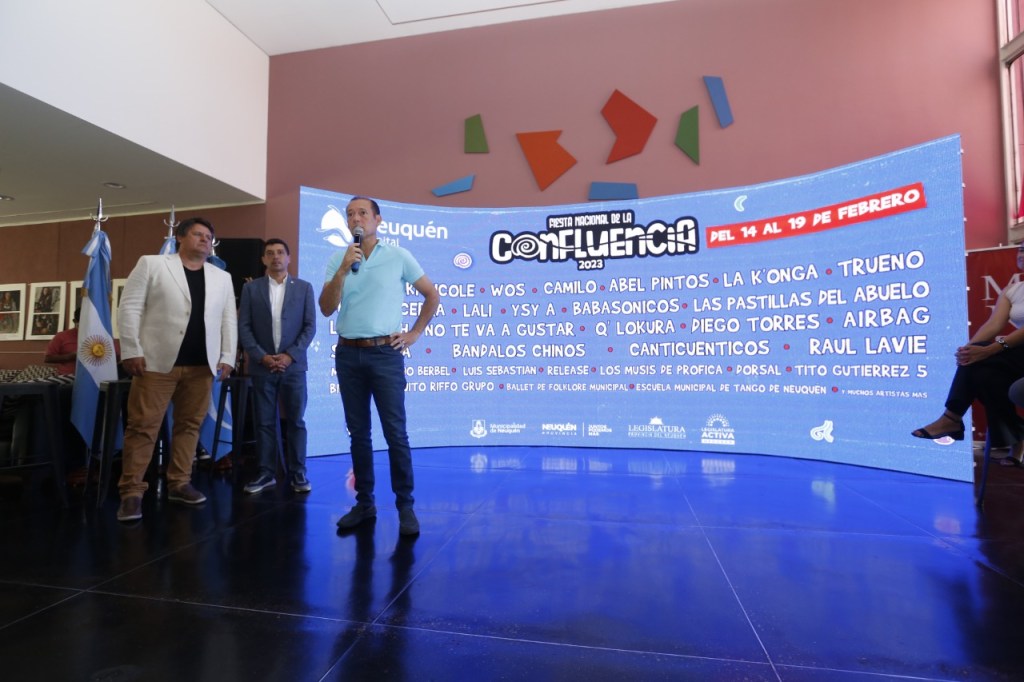 Ayer por la mañana, el gobernador Omar Gutiérrez junto al intendente de Neuquén capital, Mariano Gaido y el vicegobernador Marcos Koopmann presentaron la grilla de artistas que participarán de la Fiesta Nacional de la Confluencia 2023. La nueva edición se llevará a cabo en la Isla 132 del 14 al 19 de febrero.