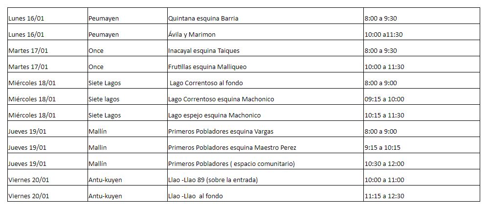 La Oficina de Atención al Vecino informa el cronograma de colocación de un camión para que puedan desechar los residuos generales que no retira el recolector de residuos domiciliarios.