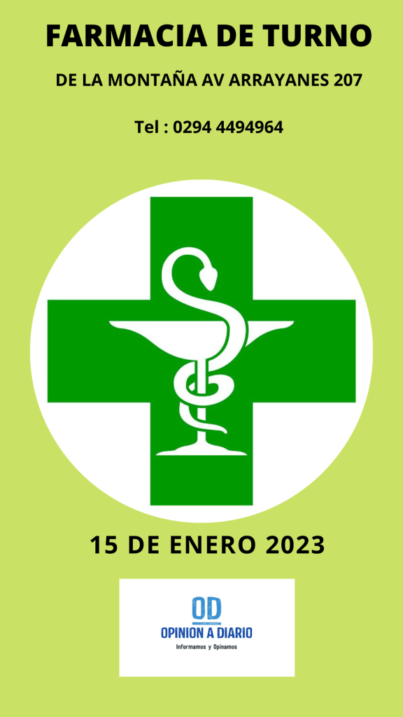 15 de enero, 202315 de enero, 2023 Opinión a Diario Farmacia de Turno para hoy domingo 15 de enero en Villa la Angostura Neuquén Relacionado