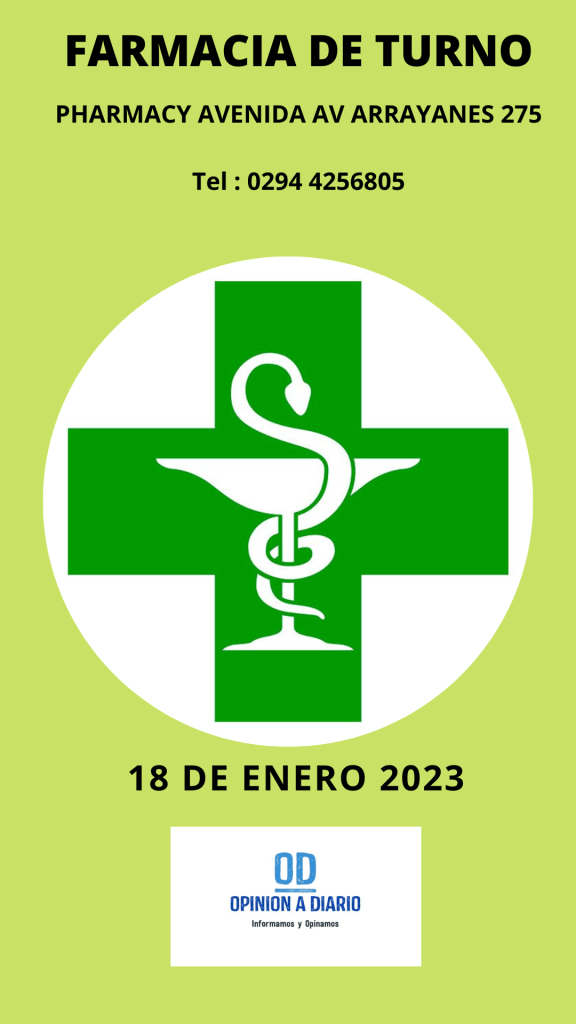 18 de enero, 202318 de enero, 2023 Opinión a Diario Farmacia de Turno para hoy miércoles 18 de enero en Villa la Angostura Neuquén Relacionado