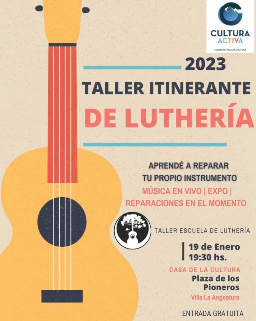 El próximo jueves 19 de enero a las 19:30 horas la Subsecretaría de Cultura, dependiente de la Secretaría de Gobierno, realizará un Taller Itinerante de Luthería en la Casa de la Cultura y la Plaza Pioneros.