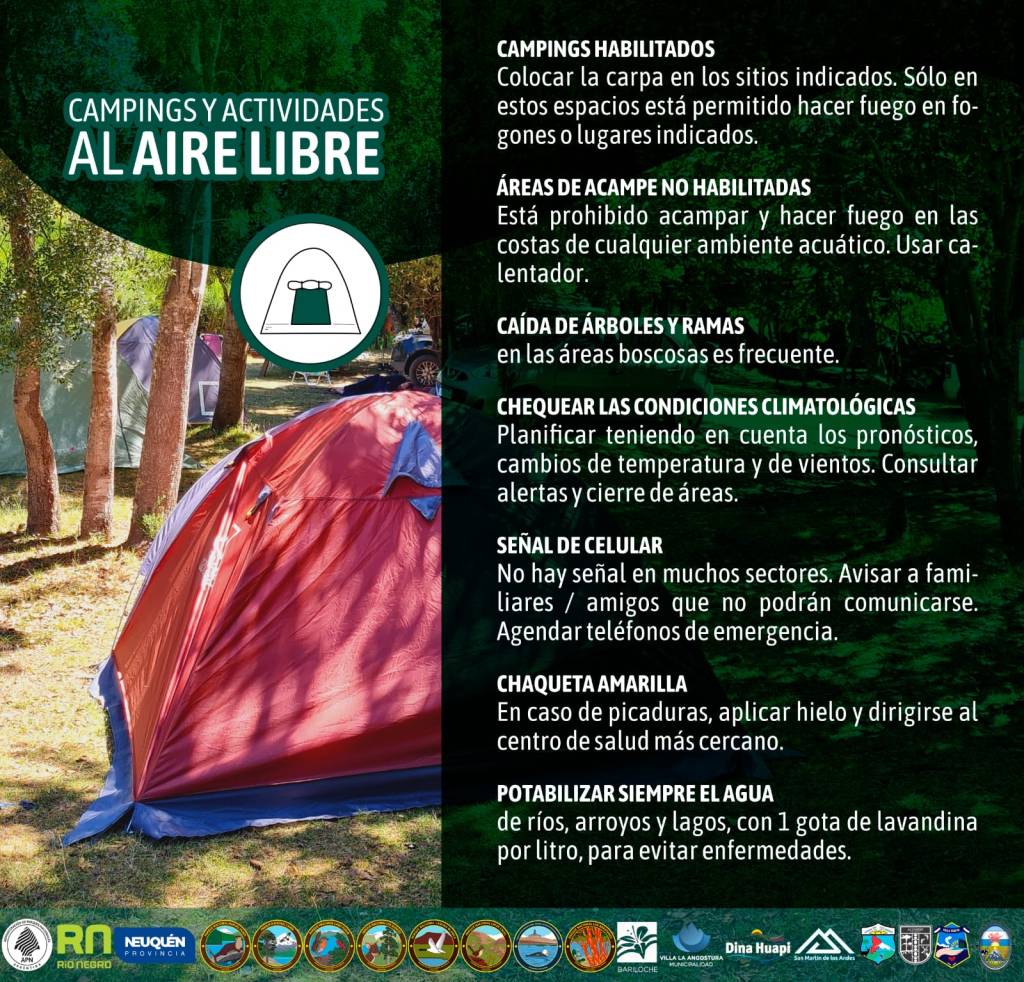• Recordar que está prohibido acampar en cualquier lugar que no esté habilitado.