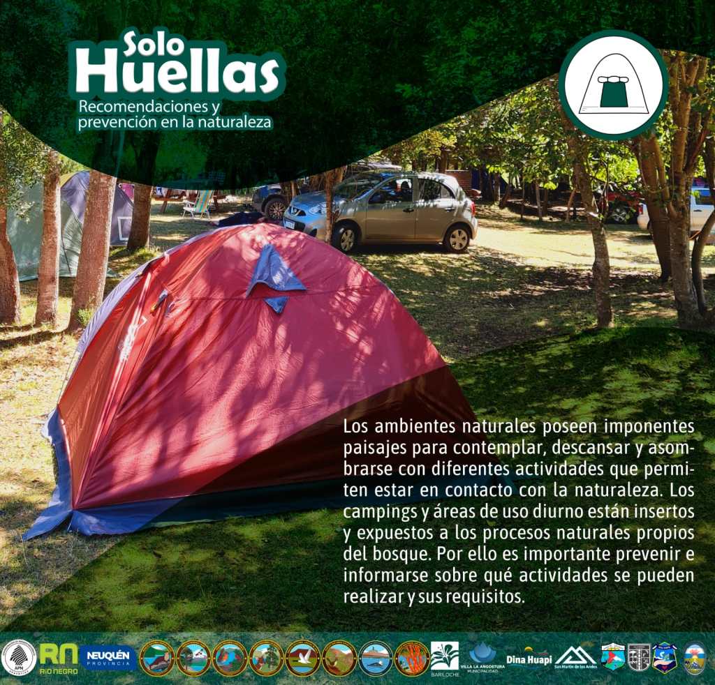Los ambientes naturales poseen imponentes paisajes para contemplar, descansar y asombrarse con diferentes actividades que permiten estar en contacto con la naturaleza. Los campings y áreas de uso diurno están insertos y expuestos a los procesos naturales propios del bosque. Por ello, es importante prevenir e informarse sobre qué actividades se pueden realizar y sus requisitos para minimizar los accidentes y colaborar para que de la visita sólo queden las huellas de los pasos.