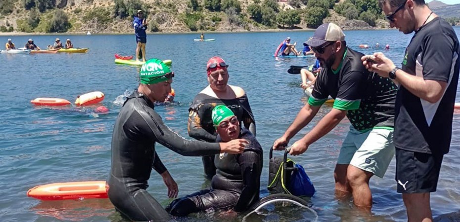 Martín y Alejandro son deportistas con discapacidad que habitualmente se desempeñan en pileta y este fin de semana mostraron una rápida adaptación a las aguas abiertas y anunciaron que próximamente estarán en el Cruce al Lago Mari Menuco como parte de la preparación para los Evita de verano.