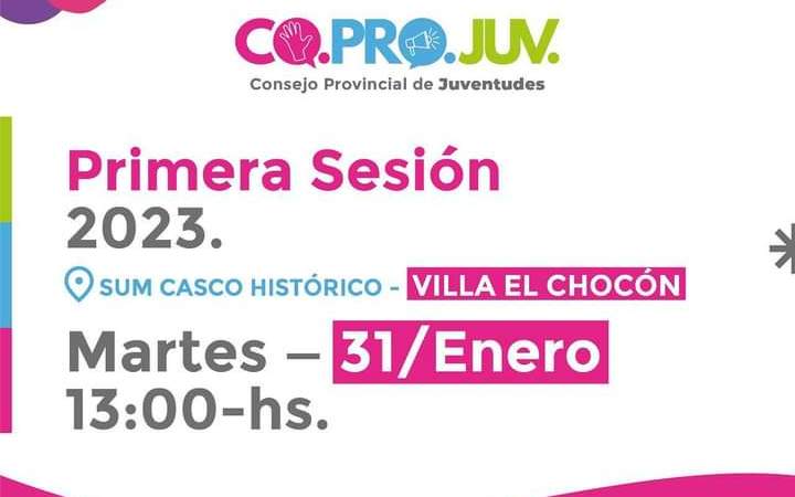 Durante el día de mañana, martes 31 de enero, tendrá lugar la 1° Sesión de 2023 del Co.Pro.Juv. (Consejo provincial de Juventudes) en Villa El Chocón y Villa La Angostura estará presente con sus representantes de la mano del coordinador del Área de Juventudes Marcelo Hermosilla junto a 15 jóvenes de la localidad.