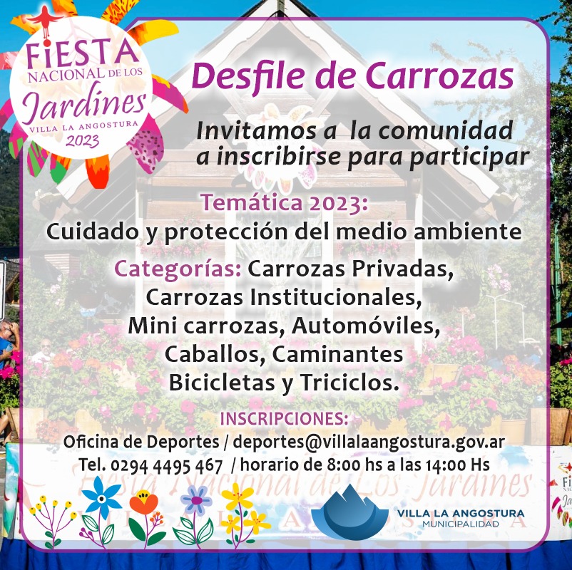 La Secretaría de Deportes recuerda que continúa abierta la inscripción para el desfile de carrozas de la edición 2023 de la Fiesta Nacional de los Jardines.