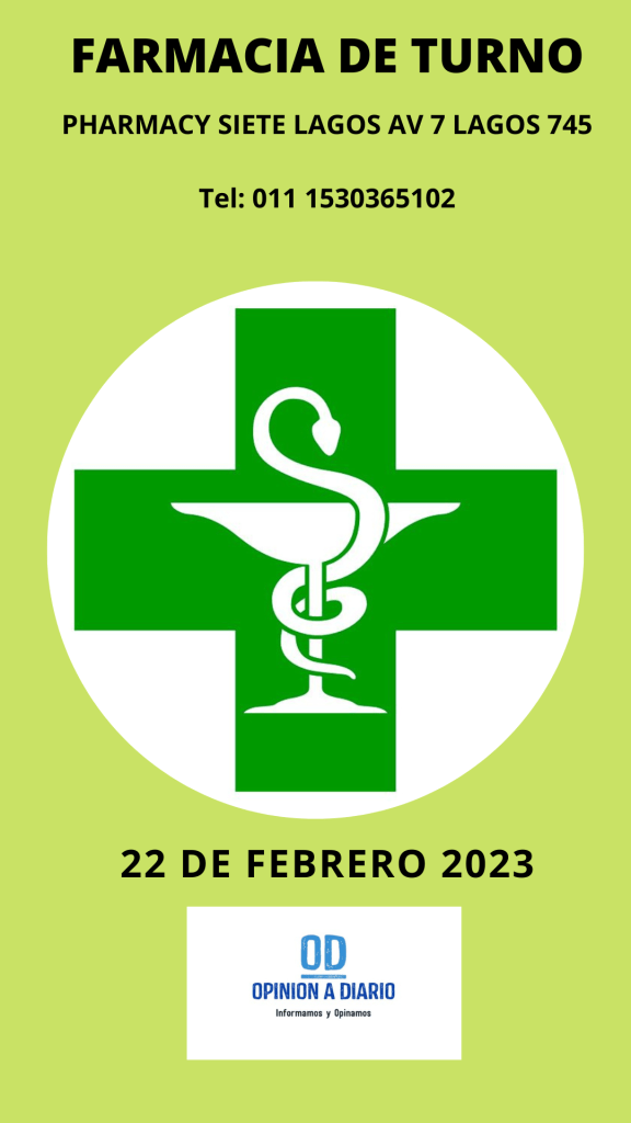 22 de febrero, 2023 Opinión a Diario Farmacia de Turno para hoy miércoles 22 de febrero en Villa La Angostura Neuquén Relacionado