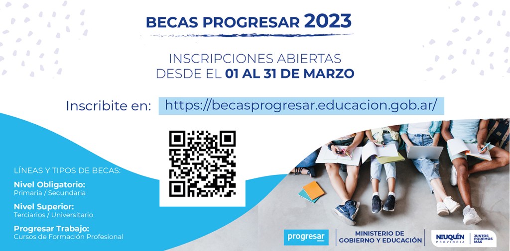 La edición 2023 del Programa Nacional de Becas Progresar, en las líneas Nivel Obligatorio (Primaria y Secundaria); Nivel Superior (Terciarios y Universitario), y Progresar Trabajo (Cursos de Formación Profesional) abrirá sus inscripciones el 1 de marzo y se extenderá hasta el 31 del mismo mes.