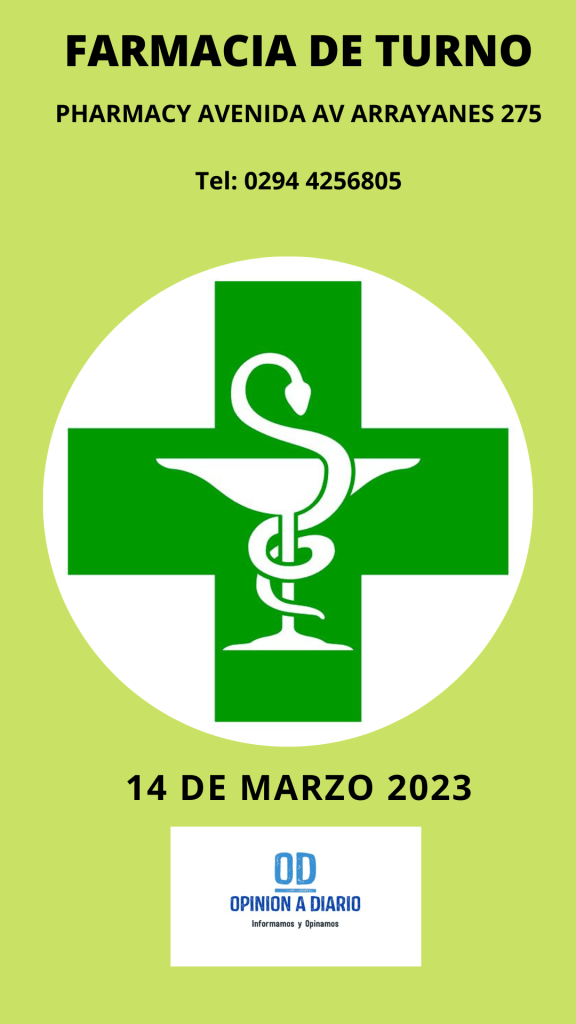 14 de marzo, 202314 de marzo, 2023 Opinión a Diario Farmacia de Turno para hoy martes 14 de marzo en Villa La Angostura Neuquén Relacionado