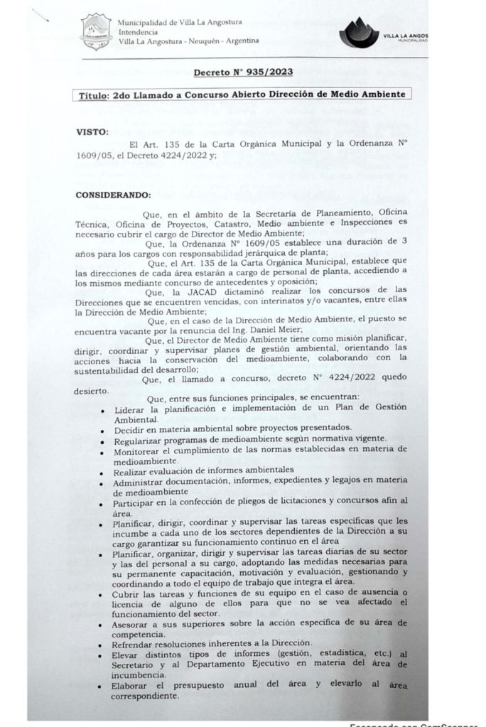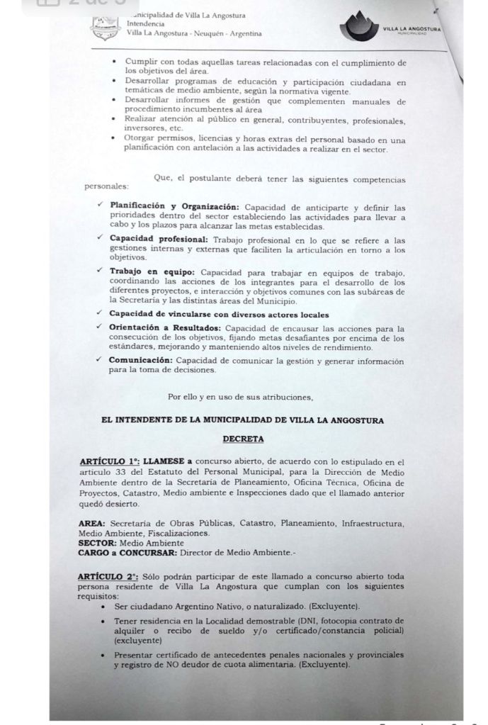 La Secretaría de Planeamiento informa a la comunidad sobre el 2° Llamado a Concurso Abierto para ocupar el cargo de Dirección de Medio Ambiente, dado que el Concurso del Decreto 4224/2022 quedó desierto.