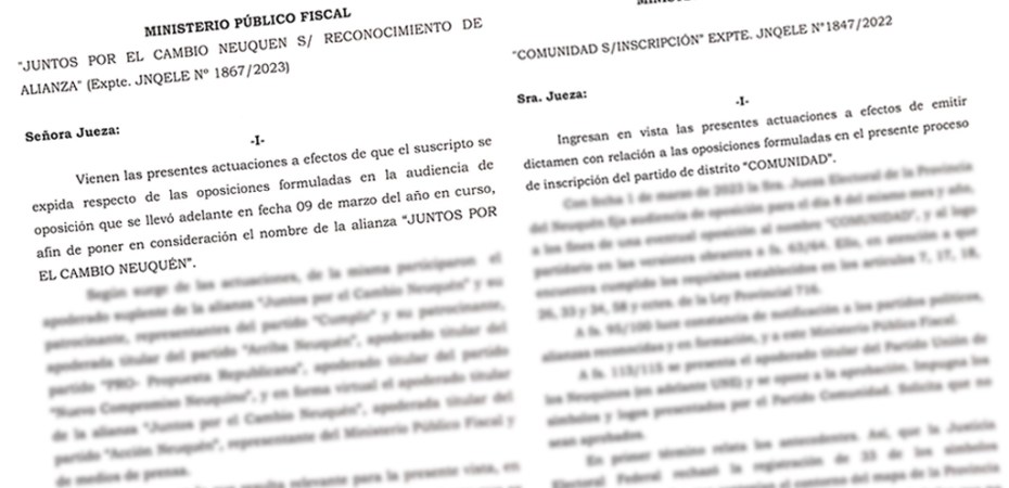 El Ministerio Público Fiscal de Neuquén (MPF) emitió dos dictámenes en torno a impugnaciones presentadas en el contexto de las próximas elecciones provinciales previstas para el 16 de abril: avaló el uso de la palabra “Neuquinizate” al partido “Comunidad” (sujeto a la decisión final de la Justicia Federal); y respaldó el uso del nombre de la alianza “Juntos por el Cambio Neuquén”.