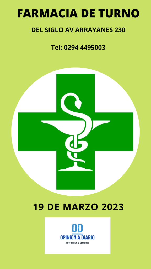 19 de marzo, 2023 Opinión a Diario Farmacia de Turno este domingo 19 de marzo en Villa La Angostura Neuquén Relacionado