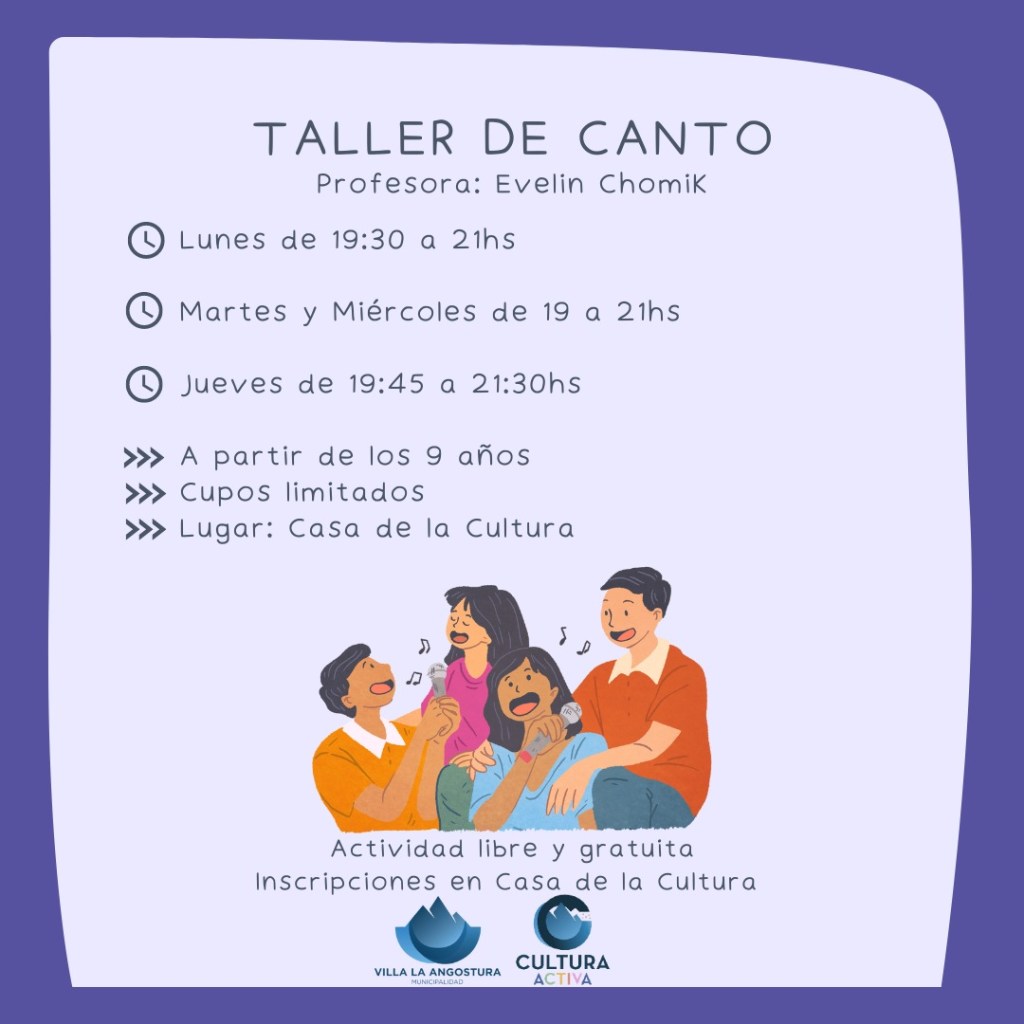 La Subsecretaría de Cultura, dependiente de la Secretaría de Gobierno, informa la apertura de talleres gratuitos para niños y adultos mayores, los cuales se realizan en la Casa de la Cultura (Las Frambuesas 32).