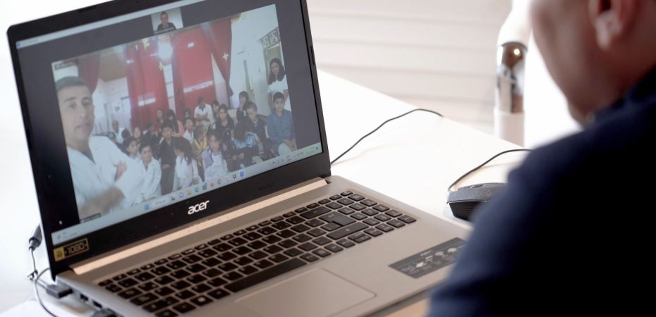 Marcos Koopmann, mantuvo una videollamada con alumnos y docentes de la comunidad educativa del paraje Naunauco, quienes a partir la semana pasada pueden conectarse al servicio de internet por banda ancha gracias a las obras llevadas adelante por la empresa Neutics con financiamiento de la Legislatura provincial.