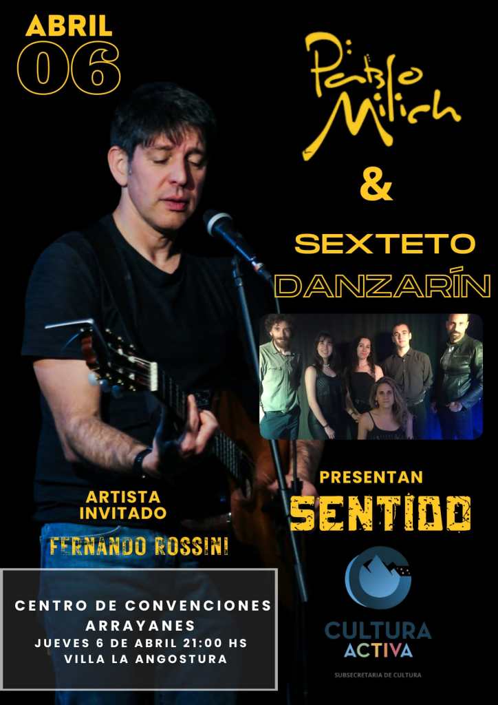 El Cantante Uruguayo Pablo Milich junto al Sexteto Danzarín presentarán «Sentido», un show dedicado a la música del Río de la Plata, donde sonarán Candombes, Murga y Tangos.