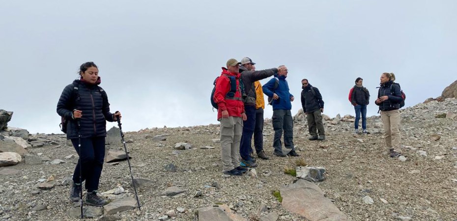 Durante la visita, la comitiva acompañada por guías y representantes de Parques Nacionales ascendieron hasta la cumbre del Cerro Bayo para observar las alternativas de circuitos del sector, centrados en las que ofrece Huella Andina y la Red de Senderos de Villa La Angostura.