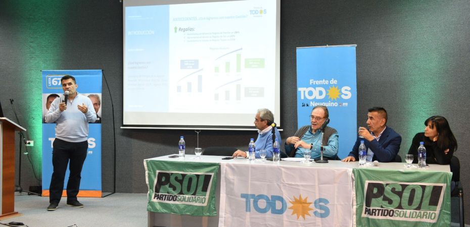 En el auditorio de economía de la Universidad Nacional del Comahue, el diputado nacional Carlos Heller llevó adelante una charla donde habló sobre economía y energía junto a Darío Martínez, primer candidato a diputado provincial por el Frente de Todos, e integrantes del Partido Solidario, el cual preside Heller.