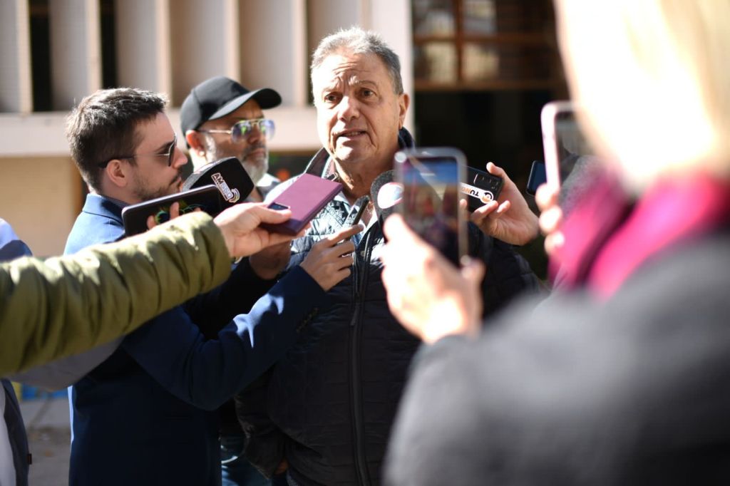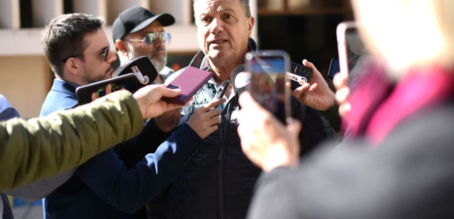 A la salida de la escuela, Carlos Eguía, Candidato a Gobernador por el Partido Cumplir que lleva a un León Amarillo como emblema y protagonista de la campaña a Gobernador como una sorpresa para los espacios tradicionales que no esperaban una irrupción de este tipo en la oferta electoral.