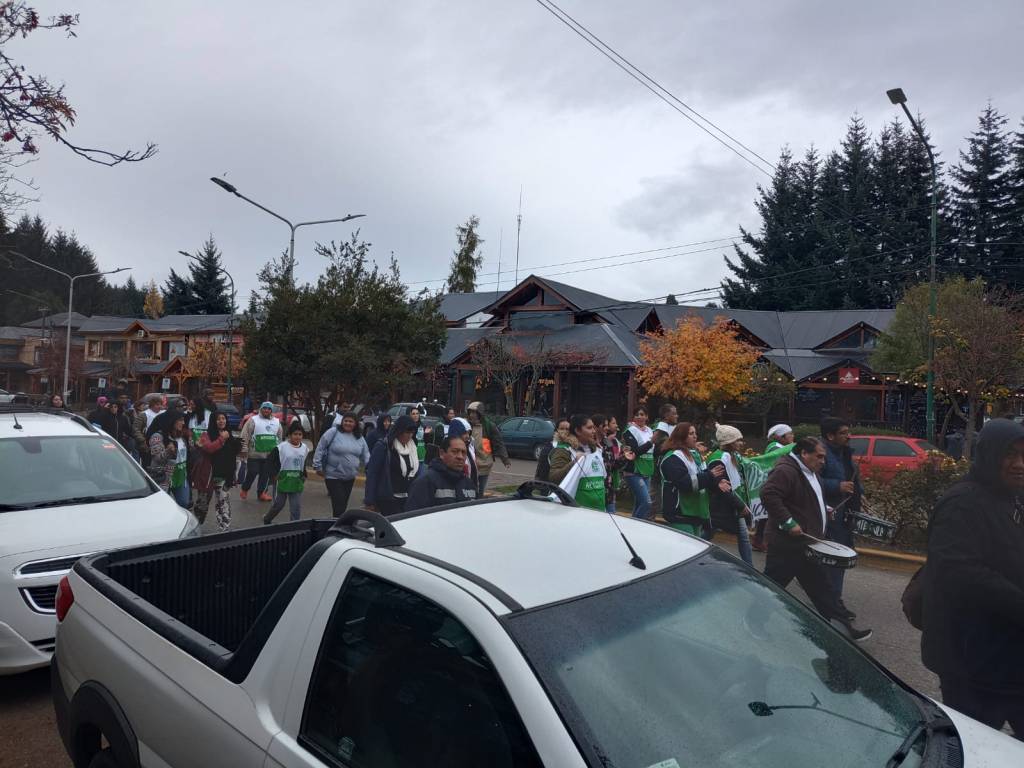 En este contexto los municipales enrolados en ATE, salieron durante la mañana de hoy bajo la lluvia a la calle, a manifestarse en apoyo de los trabajadores del ISSN que están sin respuesta en su reclamo salarial.